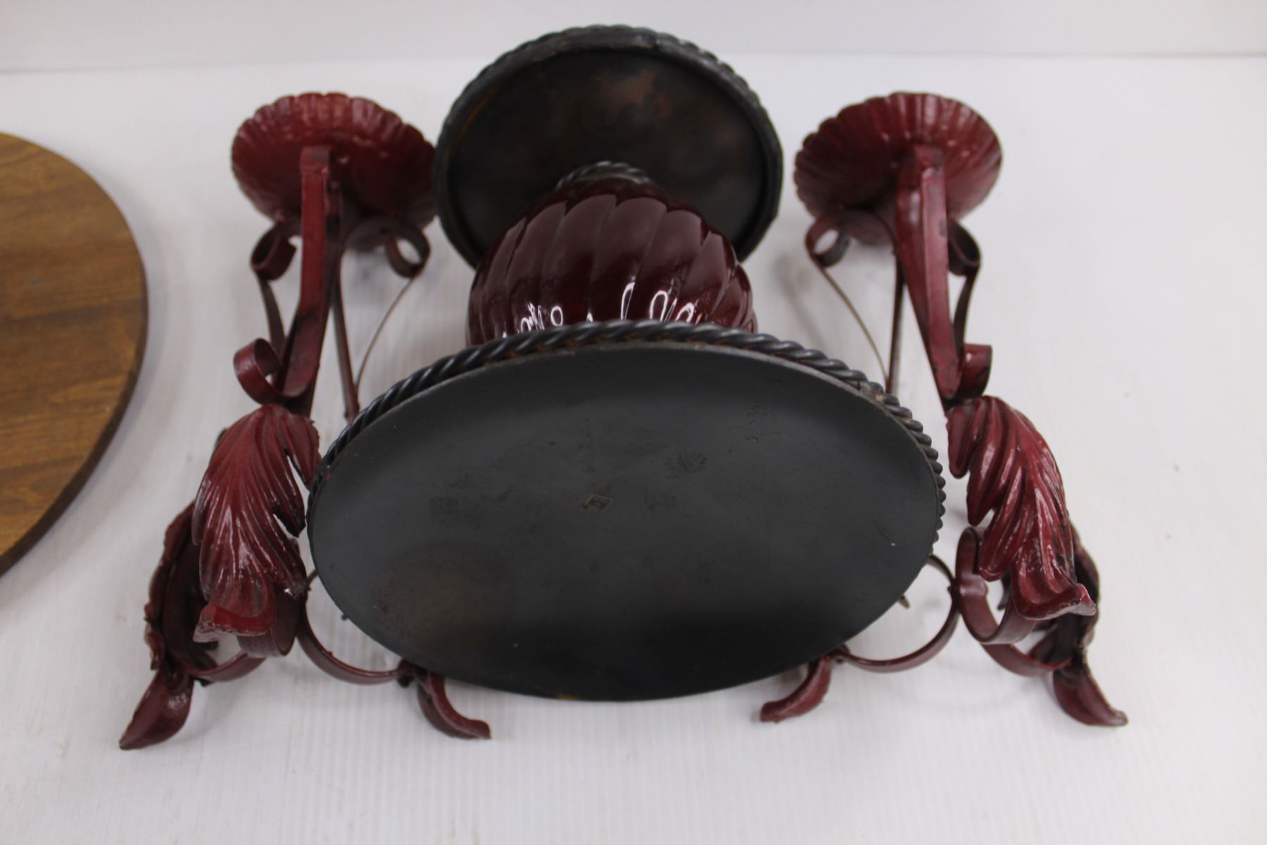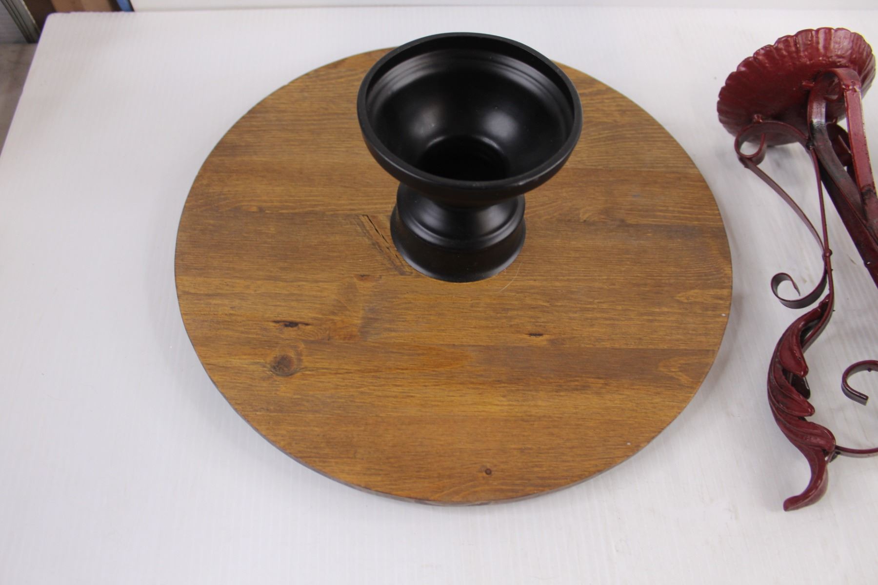 Set of 3 Vintage Candle Holders, Elevated Wooden Serving Tray 12.5" Dia