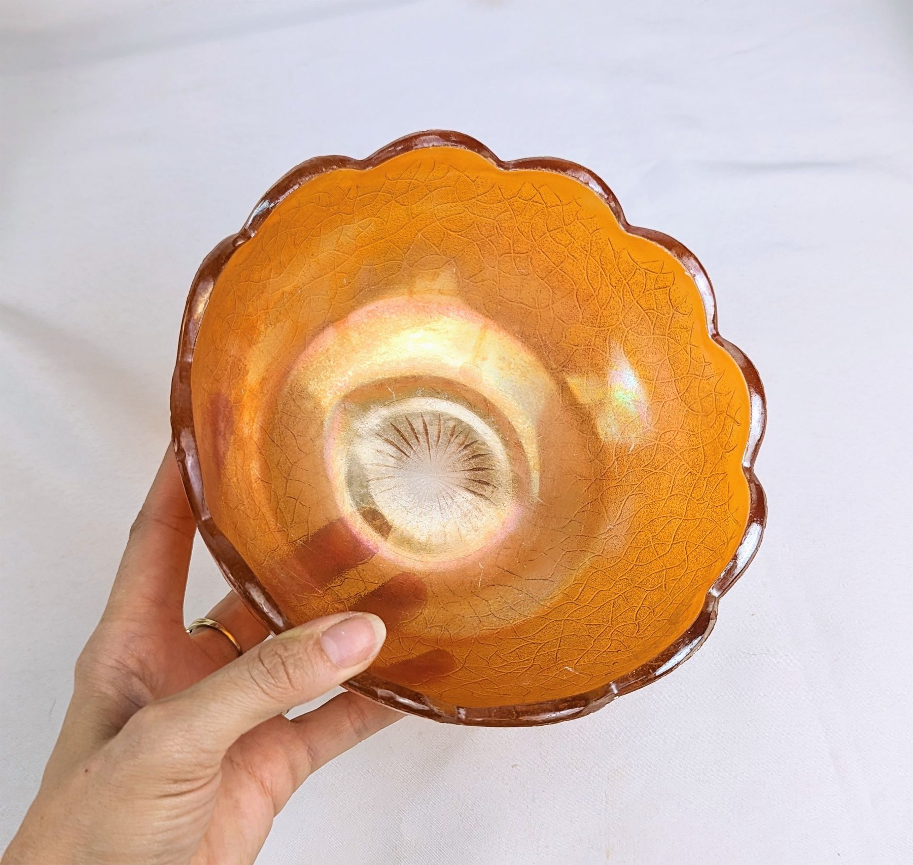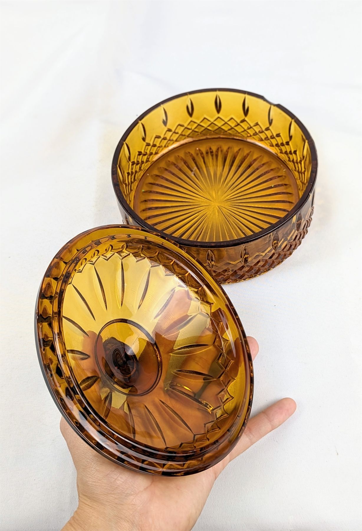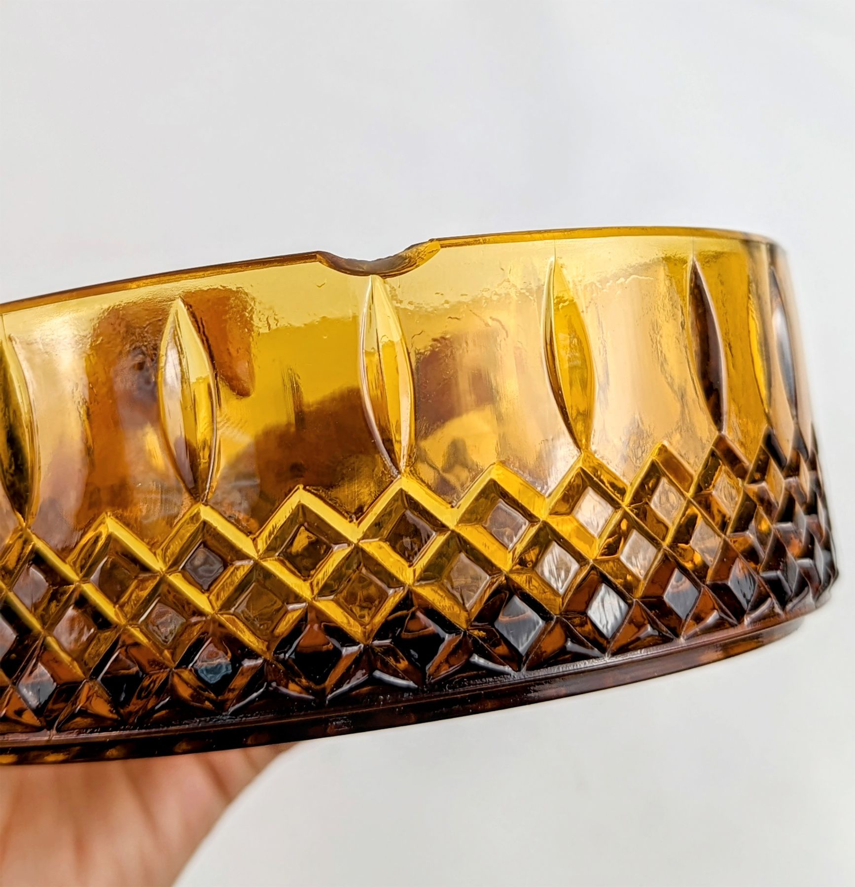 (Amber dish has chip on edge)