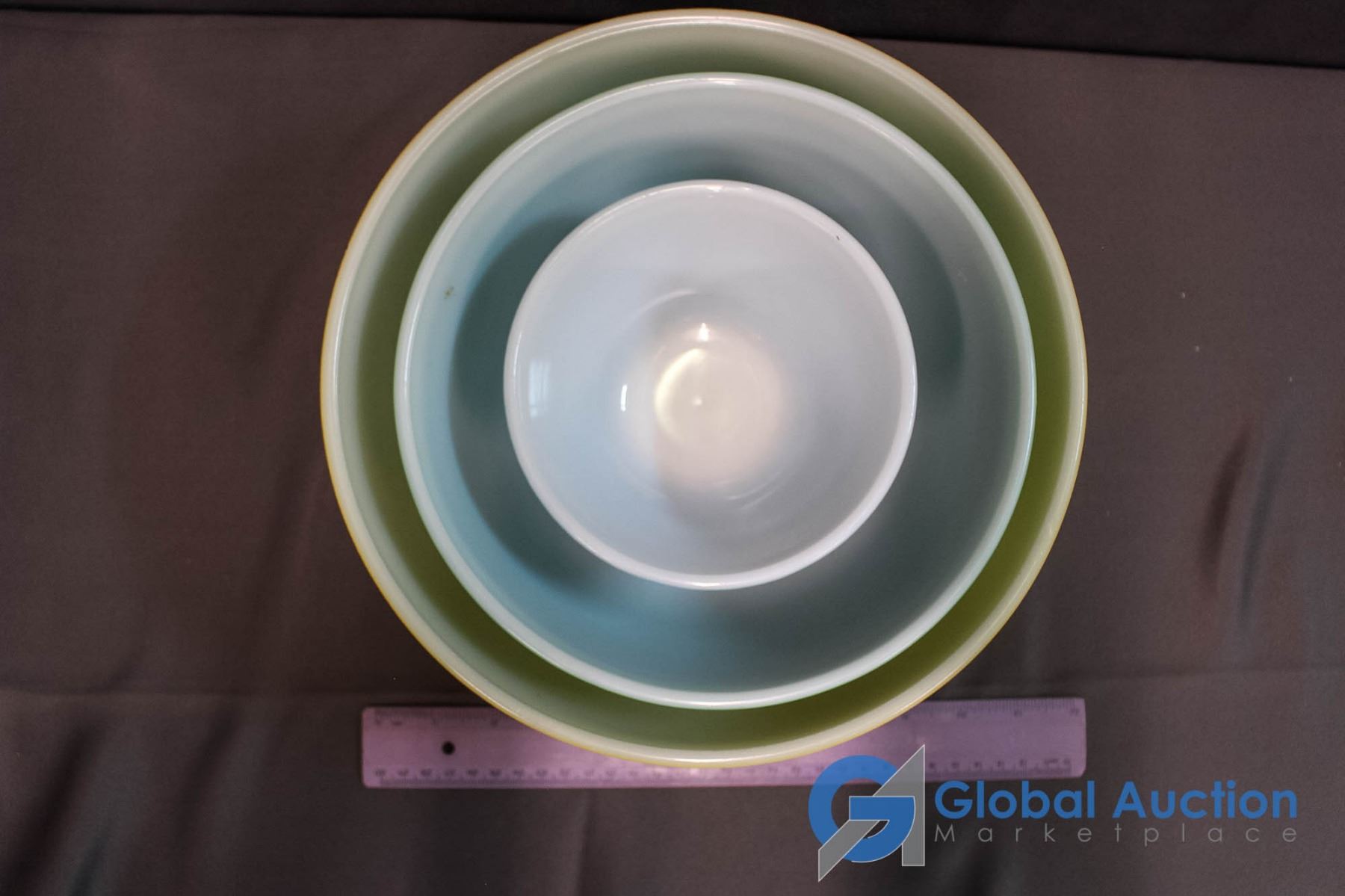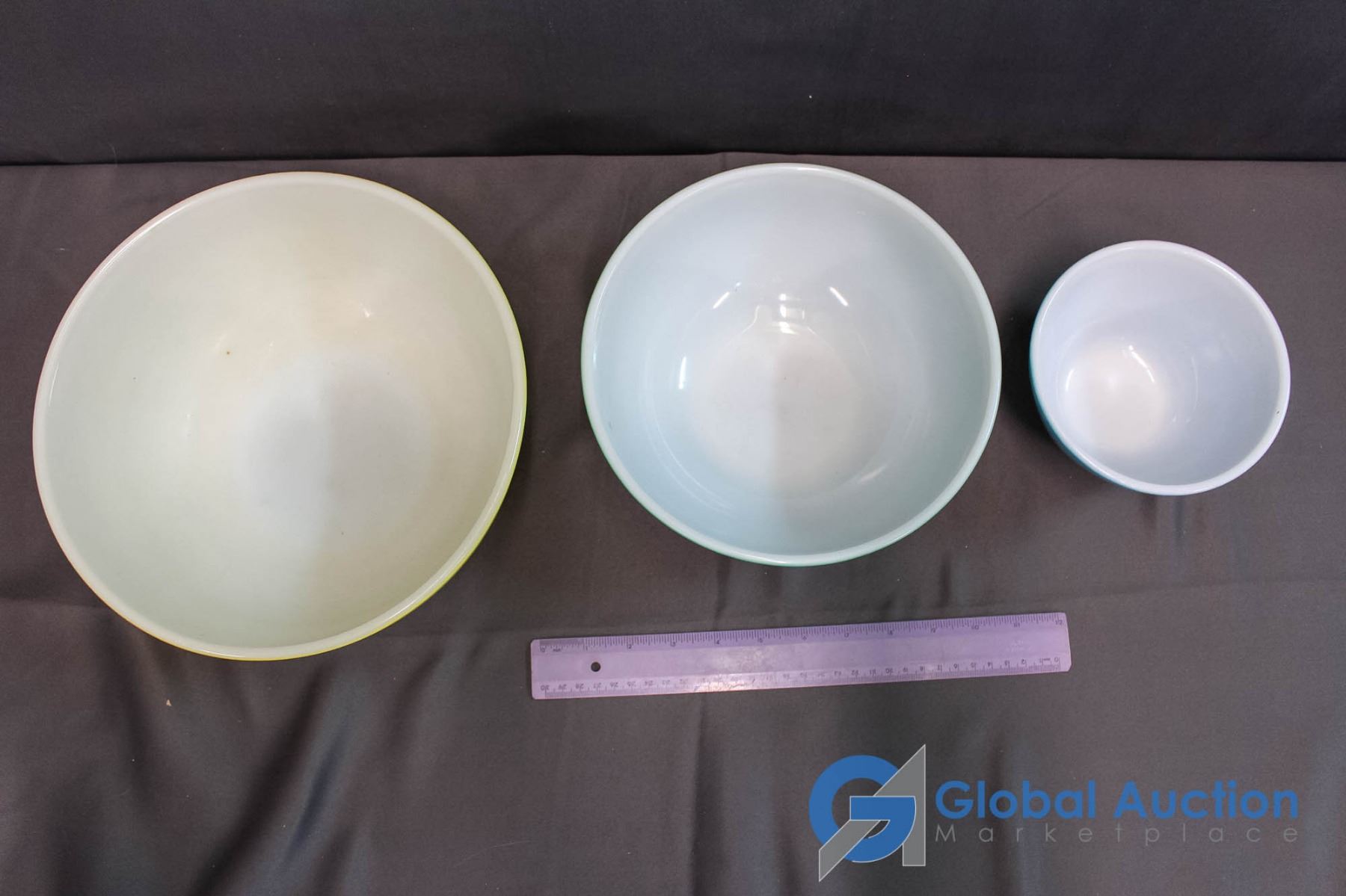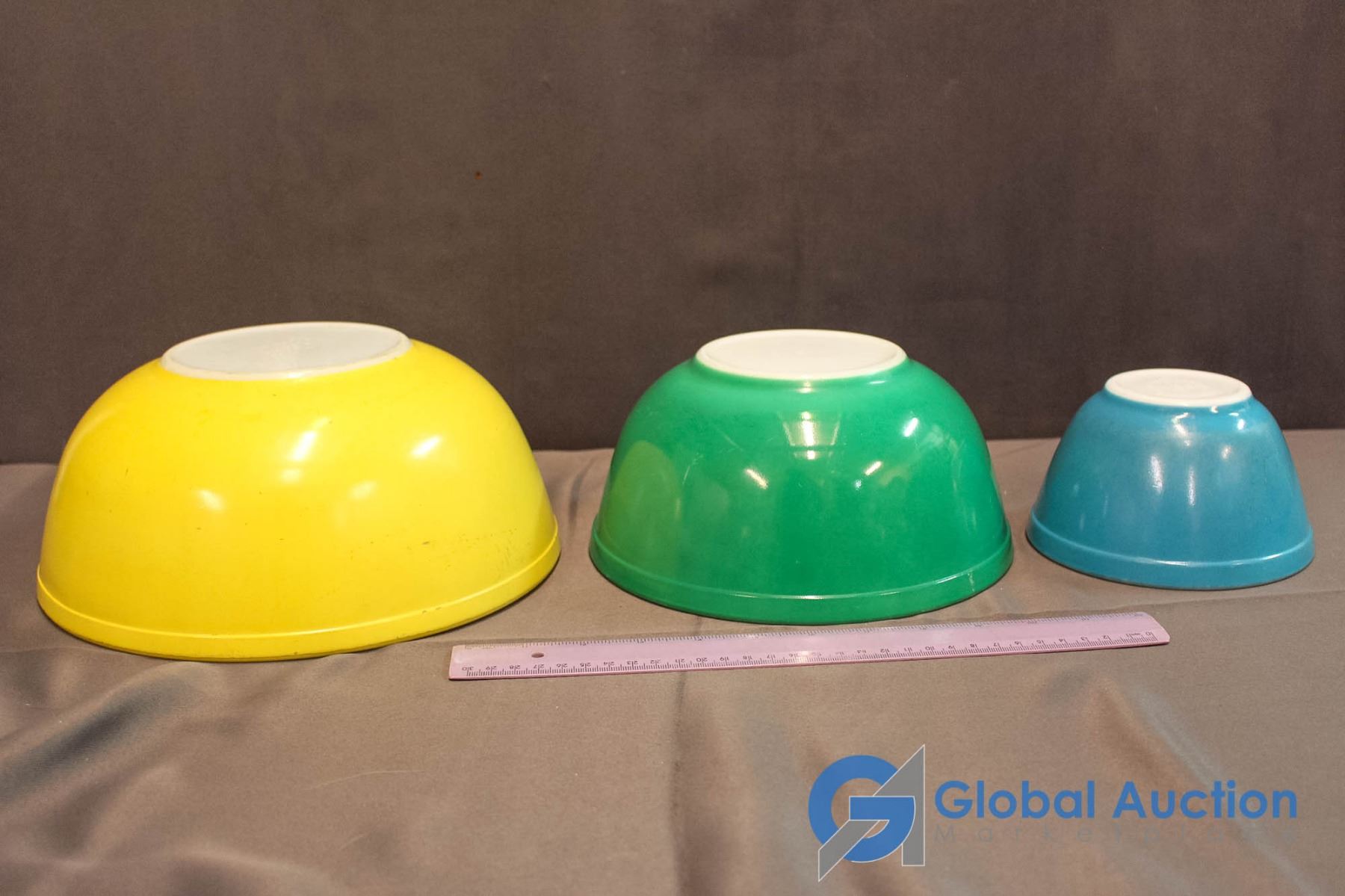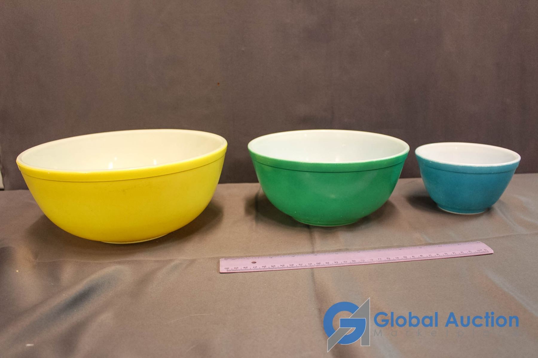 Set of 3 Vintage Pyrex Bowls (Yellow, Green & Blue - Missing the Red Bowl)