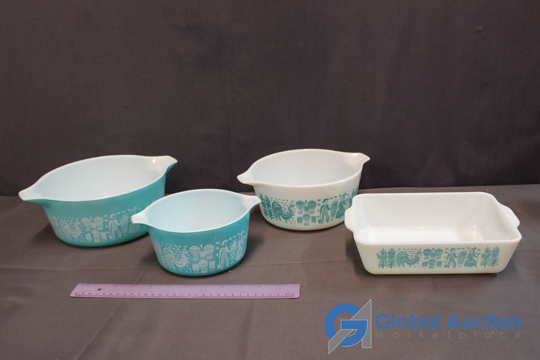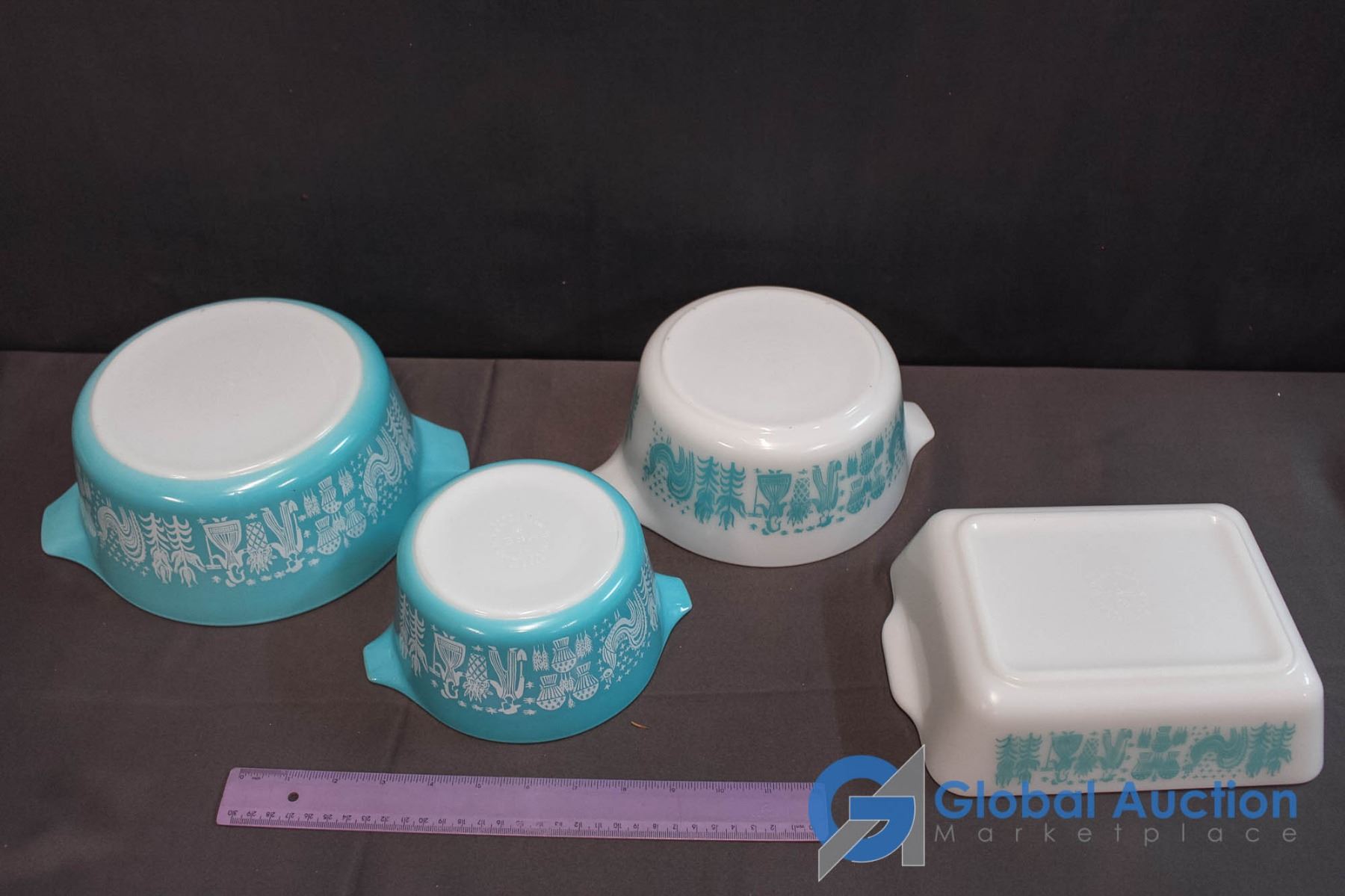 Set of 3 Vintage Pyrex Butter print Bowls & 1 Butter print Casserole Dish (1957-1968)