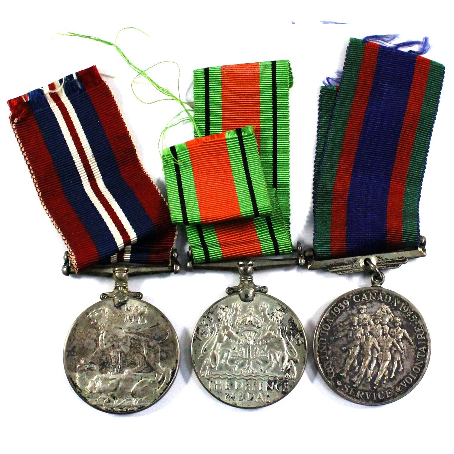 Set of 3 WWII Medals: Set includes the 1939-45 Defence Medal, Volunteer Service Medal, & the 1939-1945 war medal. 3pcs