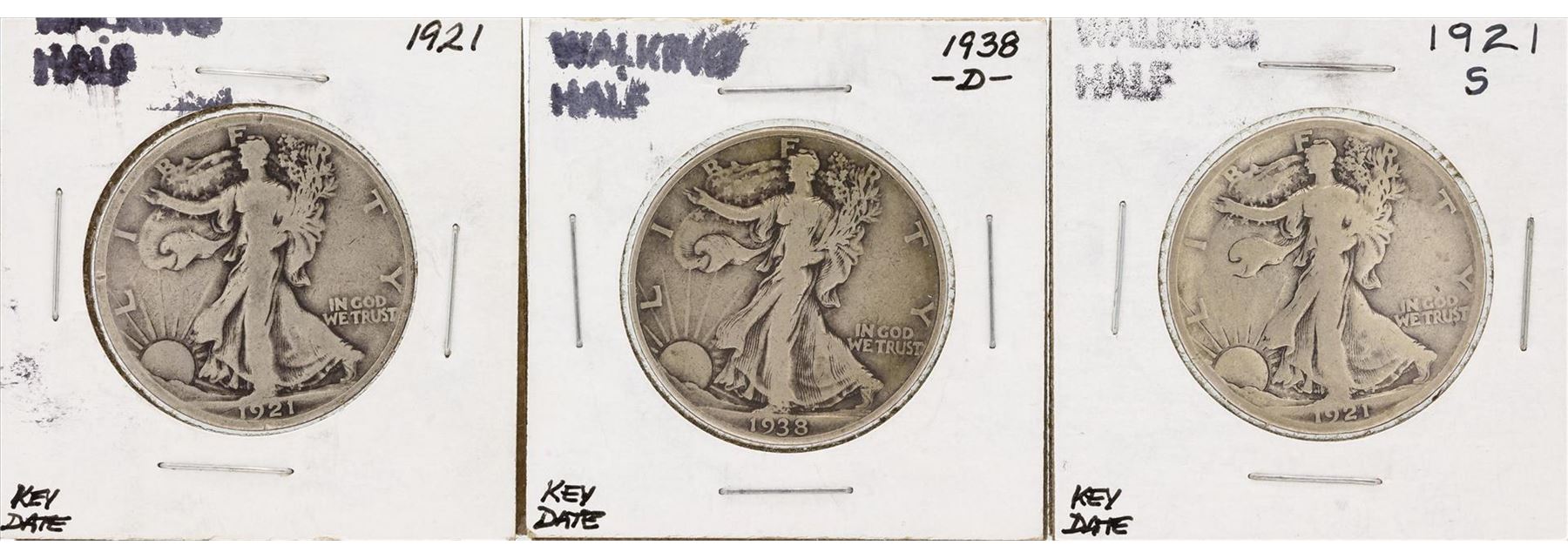 One Set of (3) Walking Liberty Half Dollar Key Date Coins.