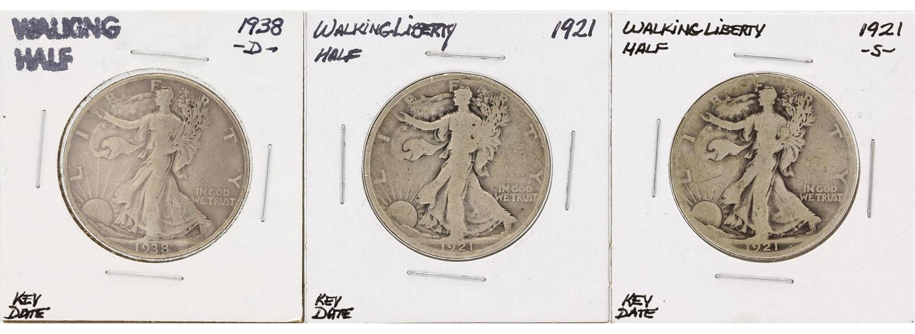 One Set of (3) Walking Liberty Half Dollar Key Date Coins.