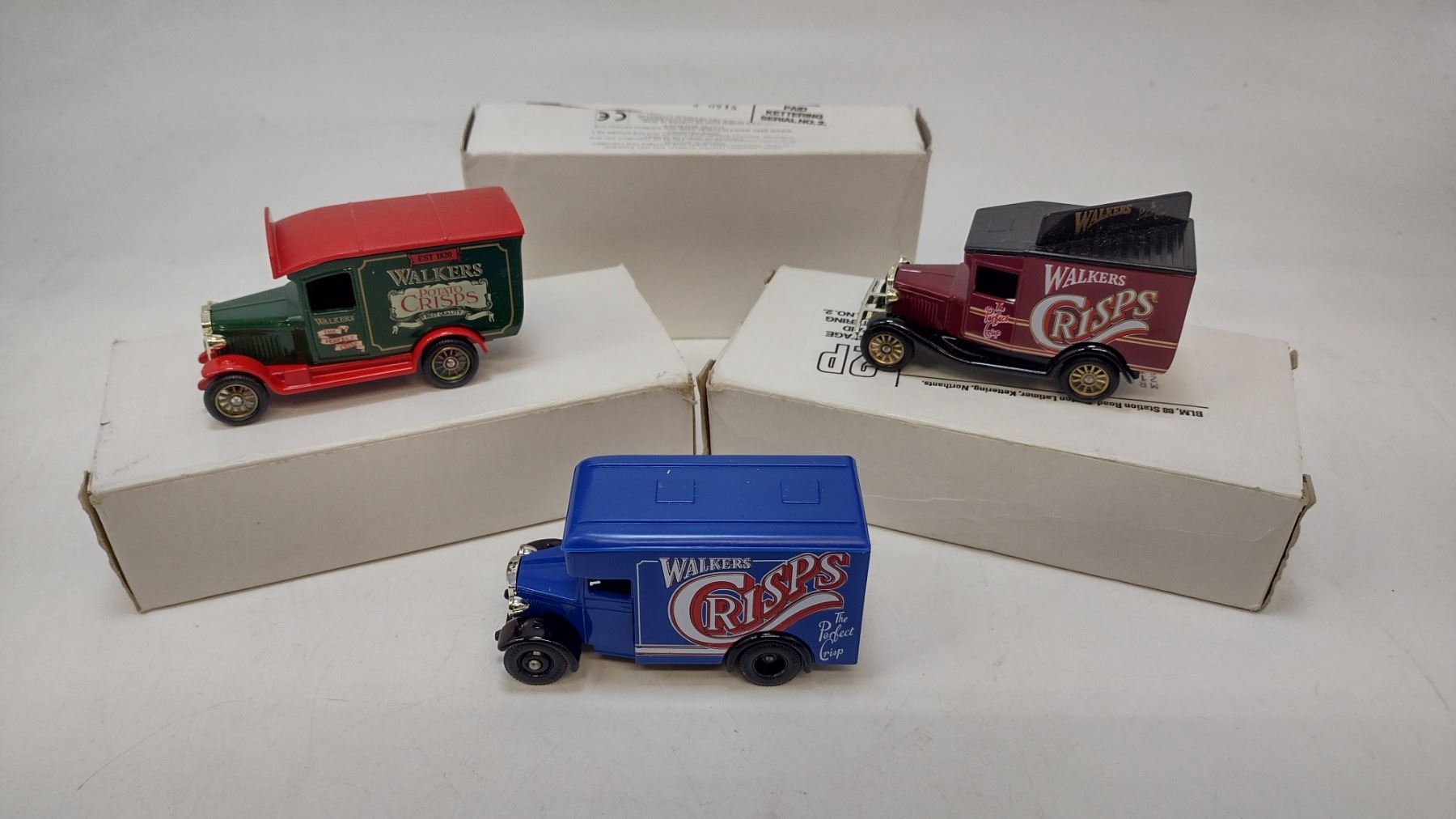 From top left to right: Lledo promo van Model T Ford, Lledo promo van Model A Ford, Lledo promo parcel delivery van