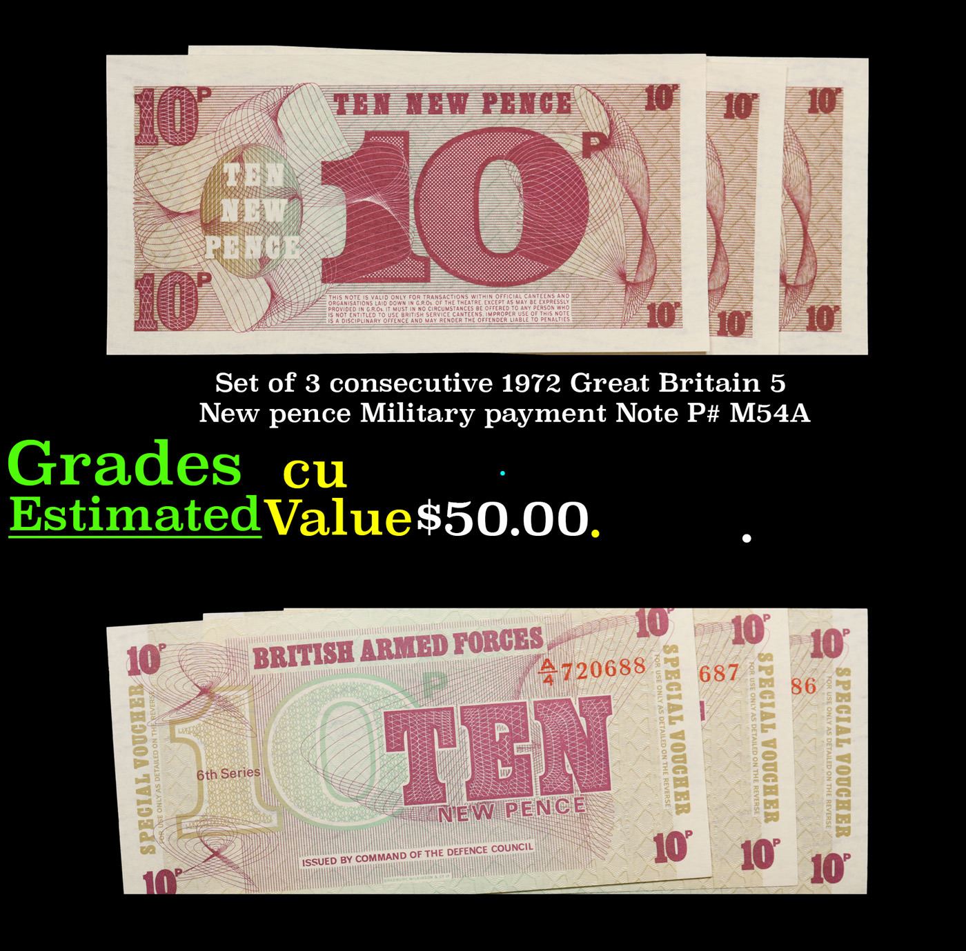 Set of 3 consecutive 1972 Great Britain 5 New pence Military payment Note P# M54A Grades CU
