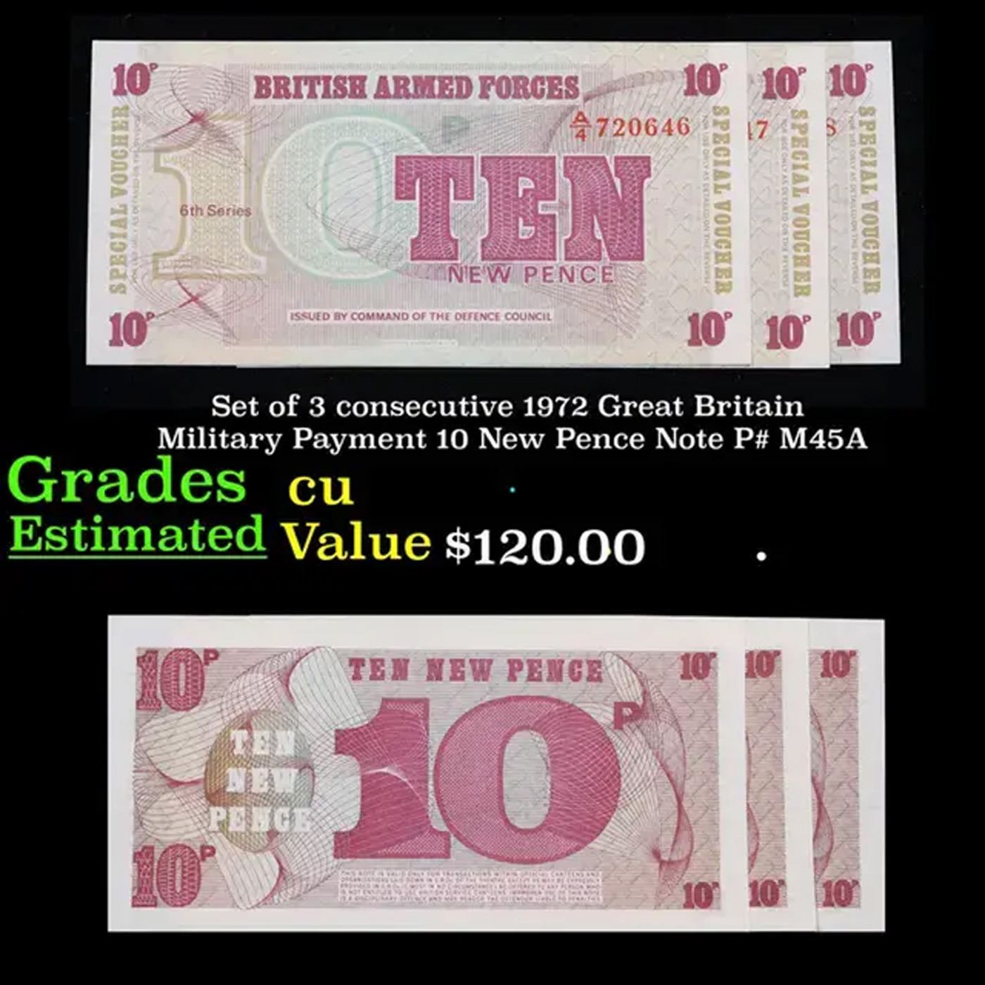 Set of 3 consecutive 1972 Great Britain Military Payment 10 New Pence Note P# M45A Grades CU