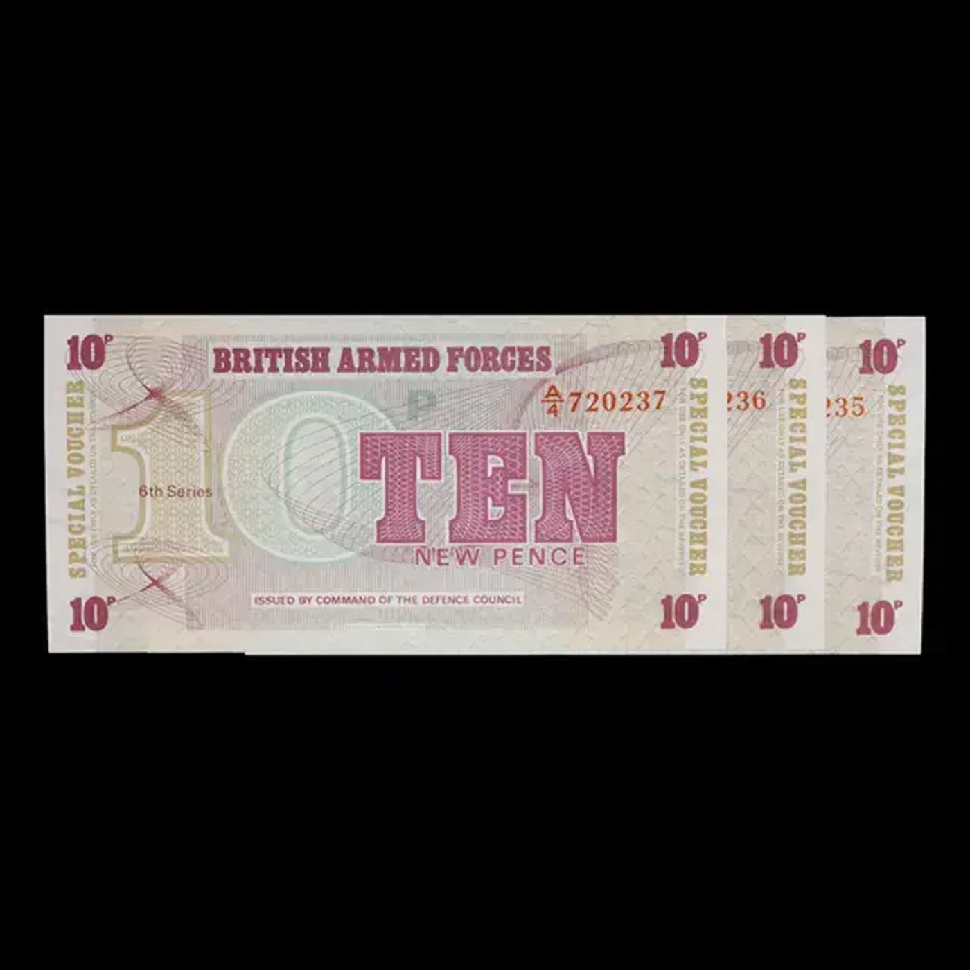 Set of 3 consecutive 1972 Great Britain Military Payment 10 New Pence Note P# M45A Grades CU