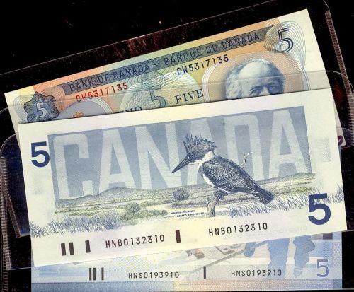 Set of 3 different RADAR $5 notes. Includes 1972 $5 CW5317135, 1986 $5 HNB0132310, 2002 $5 HNS019391