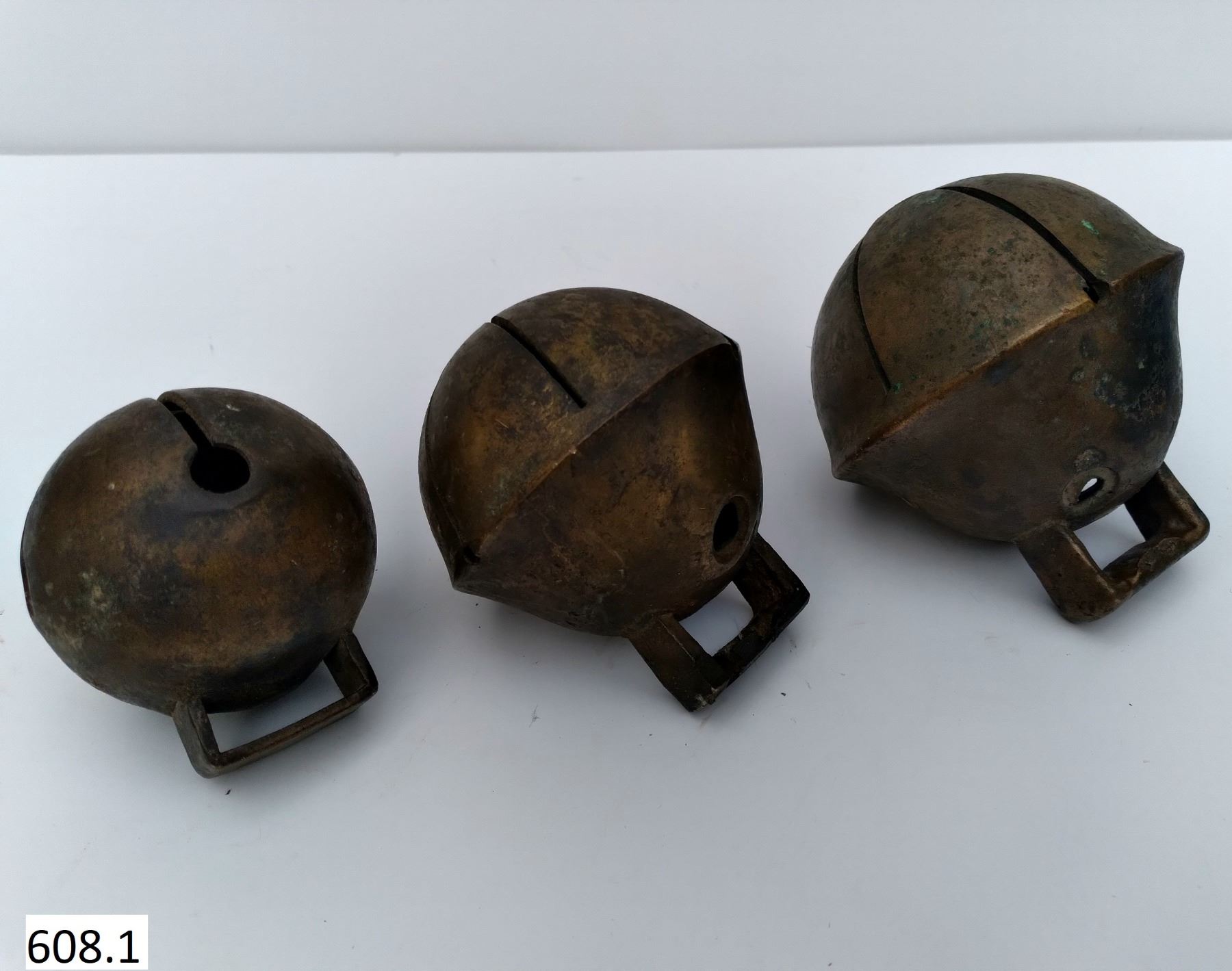 Set of 3 different size original brass horse bells