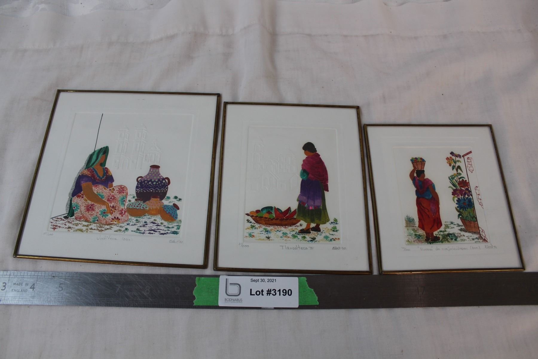 Set of 3 framed paper artworks - #'d /200 - Block '90