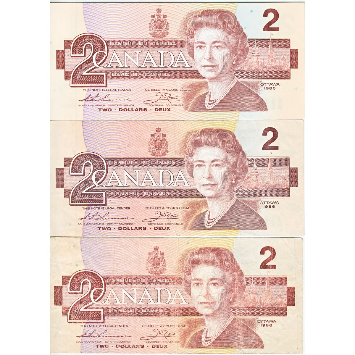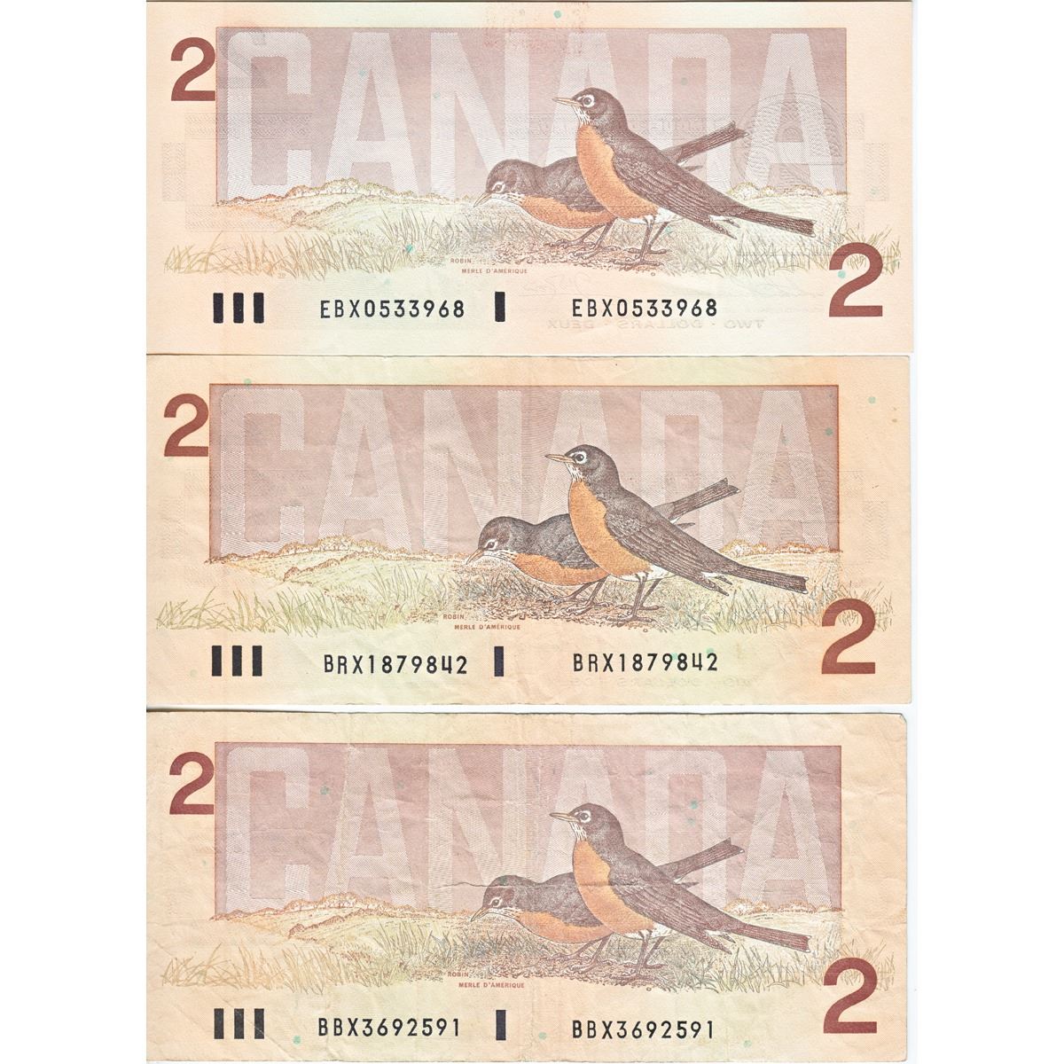 Set of 3 x 1986 replacement $2.00 Notes in Average Circulated Condition.Includes BBX, BRX and EBX. Buyers Premium will be added on all items as per our terms of sale. We accept Paypal, Credit Card, E-Transfer Payments, Cheque or Money Orders (there is an additional 3% fee for using Paypal or Credit Card). All invoices will be emailed immediately following the auction, please contact us if you would like to pay by credit card or receive a new revised lower total for mailing in payment or sending an e-transfer (3% discount). All Items Are Sold "AS IS", no returns