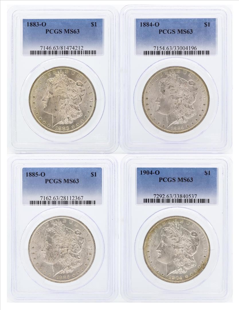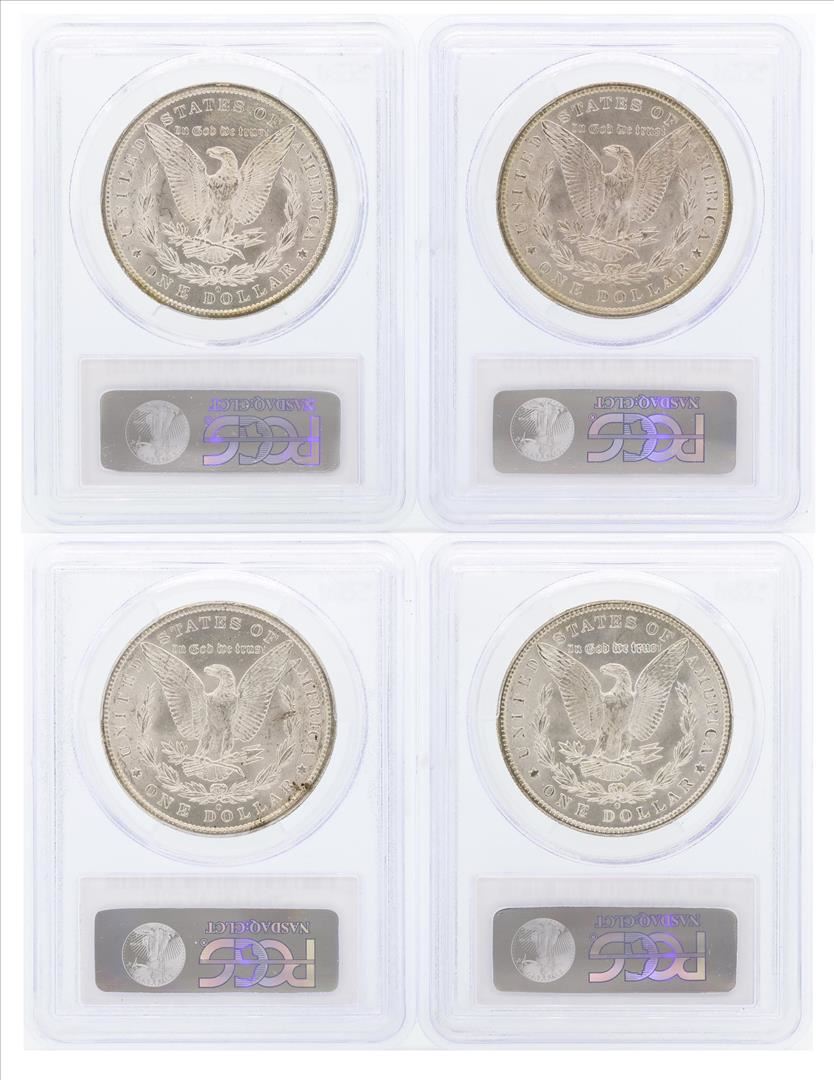 One Set of (4) $1 Morgan Silver Dollar Coins PCGS MS63. PCGS Graded.