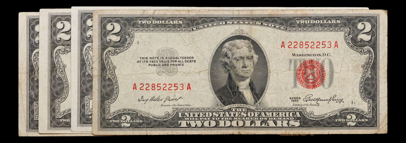Set of 4 1963 -A-B-C $1 Red Seal Note Grades XF/AU.