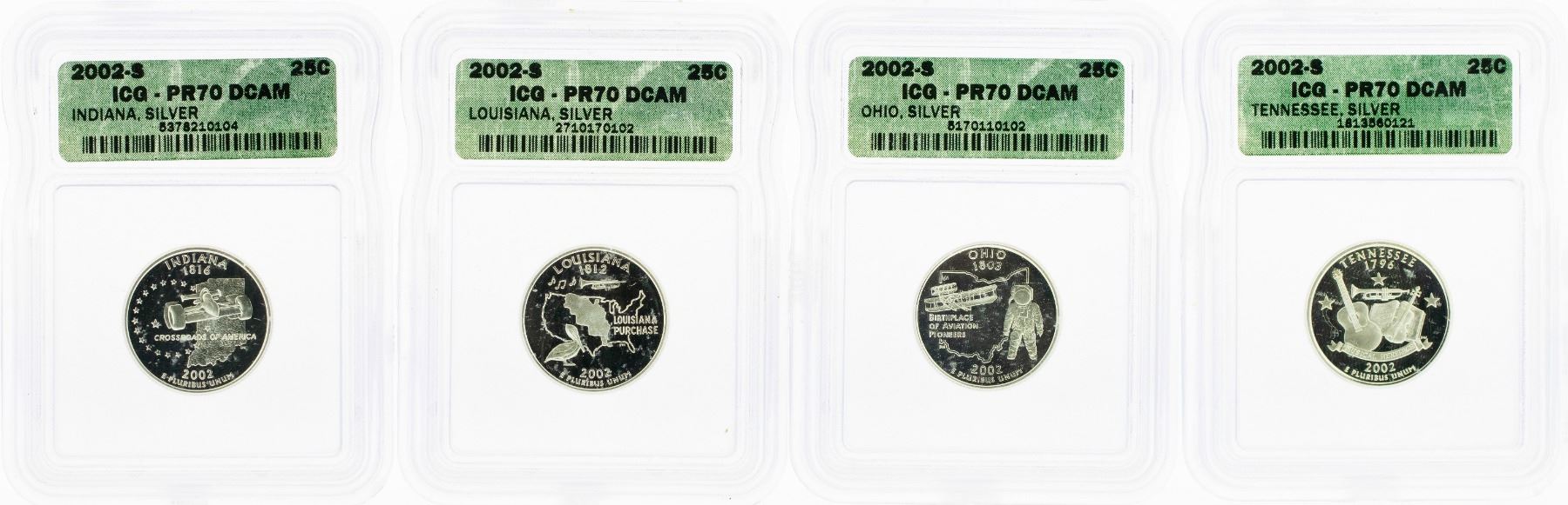 One Set of (4) 2000-S Statehood Quarter Silver Coins ICG PR70 DCAM.