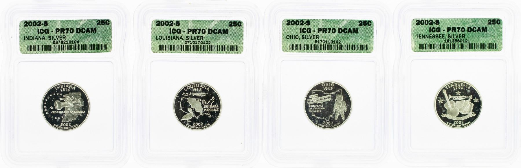 One Set of (4) 2000-S Statehood Quarter Silver Coins ICG PR70 DCAM.