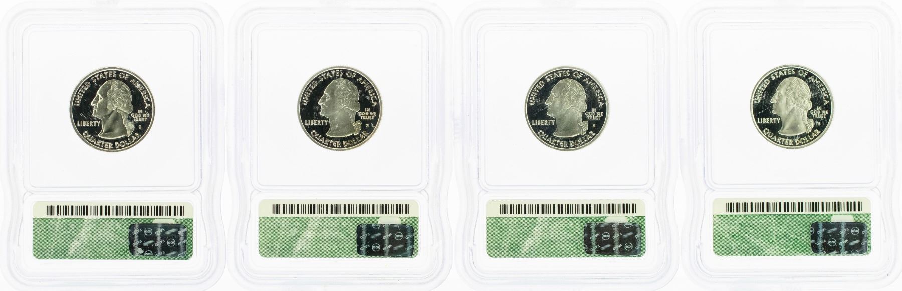 One Set of (4) 2000-S Statehood Quarter Silver Coins ICG PR70 DCAM.