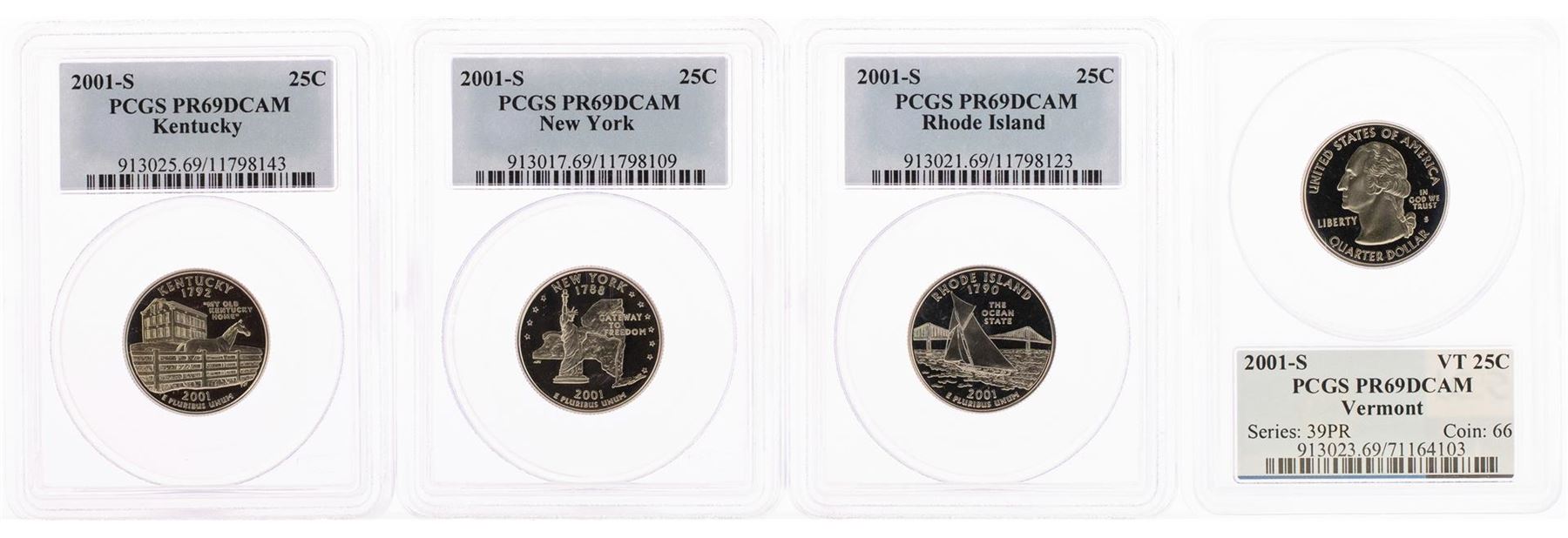 One Set of (4) 2001-S Proof State Quarter Coins PCGS PR69DCAM. PCGS Graded.