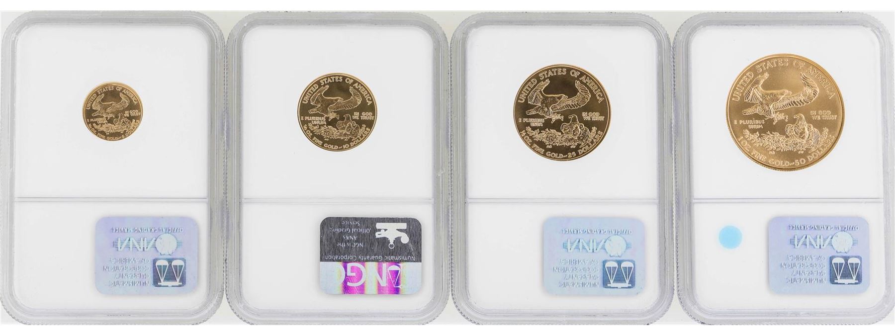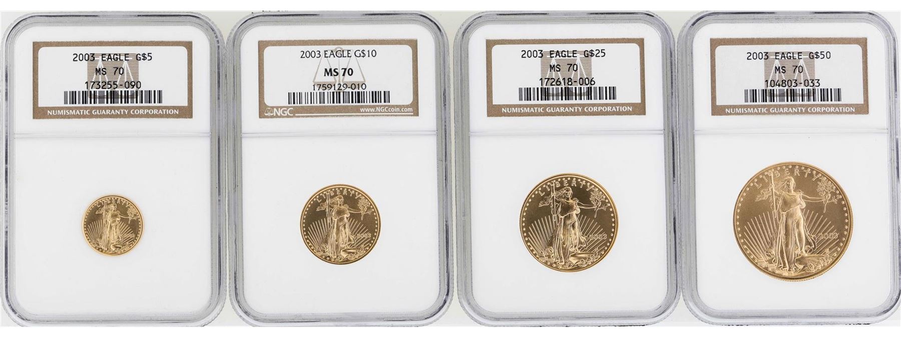 One Set of (4) 2003 American Gold Eagle Coins NGC MS70. NGC Certified.