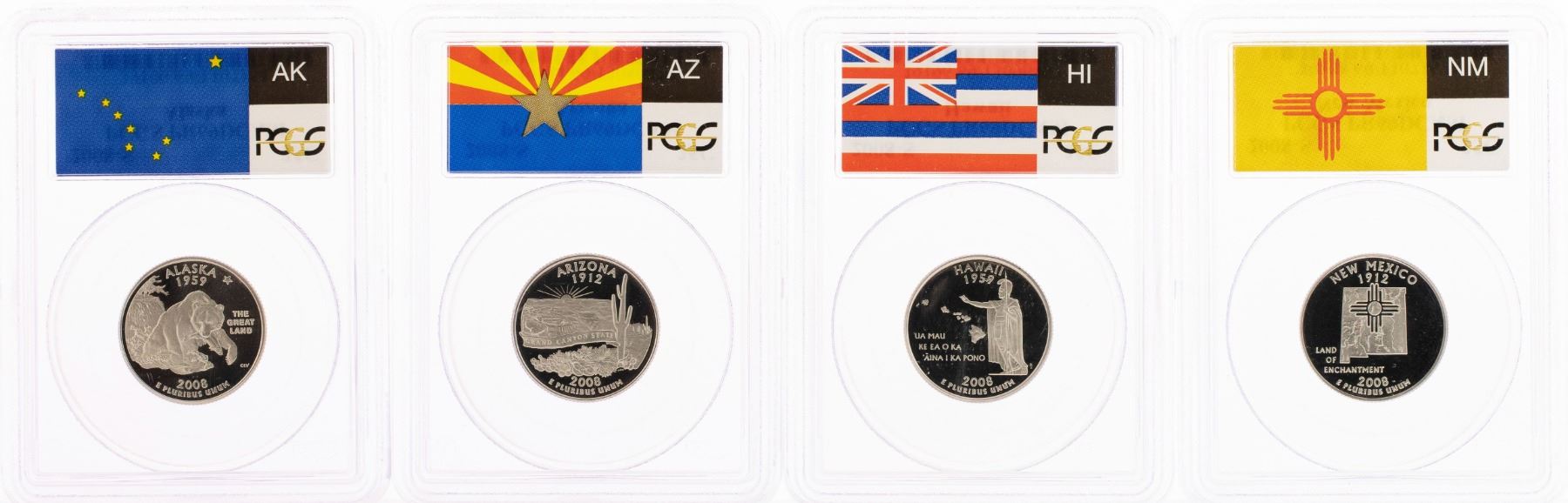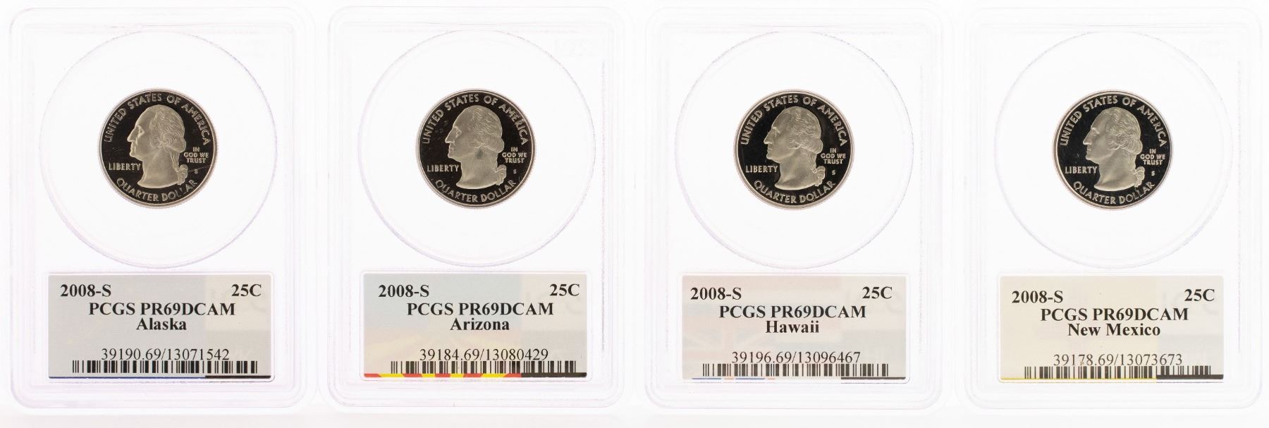 One Set of (4) 2008-S Proof State Quarter Coins PCGS PR69DCAM.