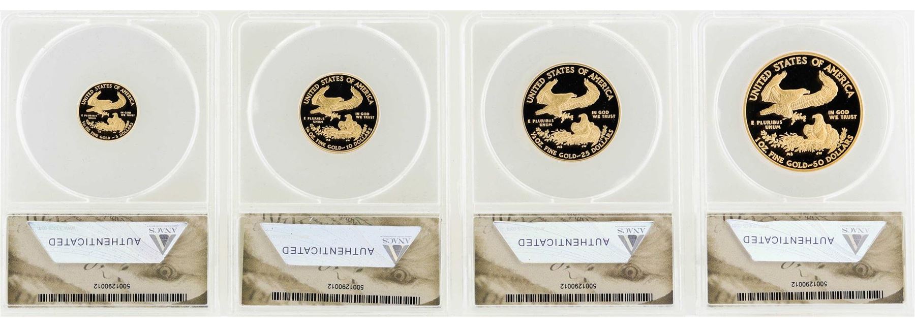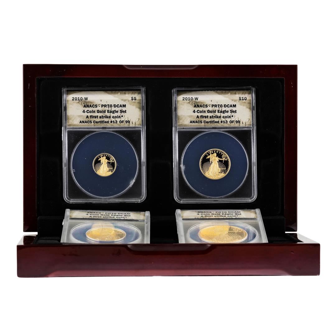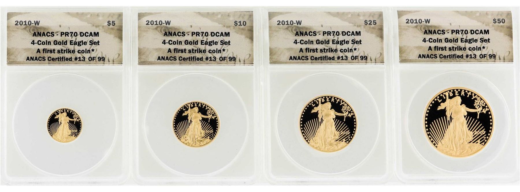 One Set of (4) 2010-W American Gold Eagle Coins ANACS PR70DCAM First Strike. ANACS Certified.