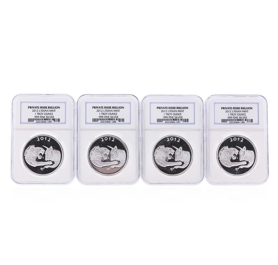 One Set of (4) 2012 Lydian Mint .999 Silver 1 Troy Ounce Coins NGC Certified. NGC Certified.