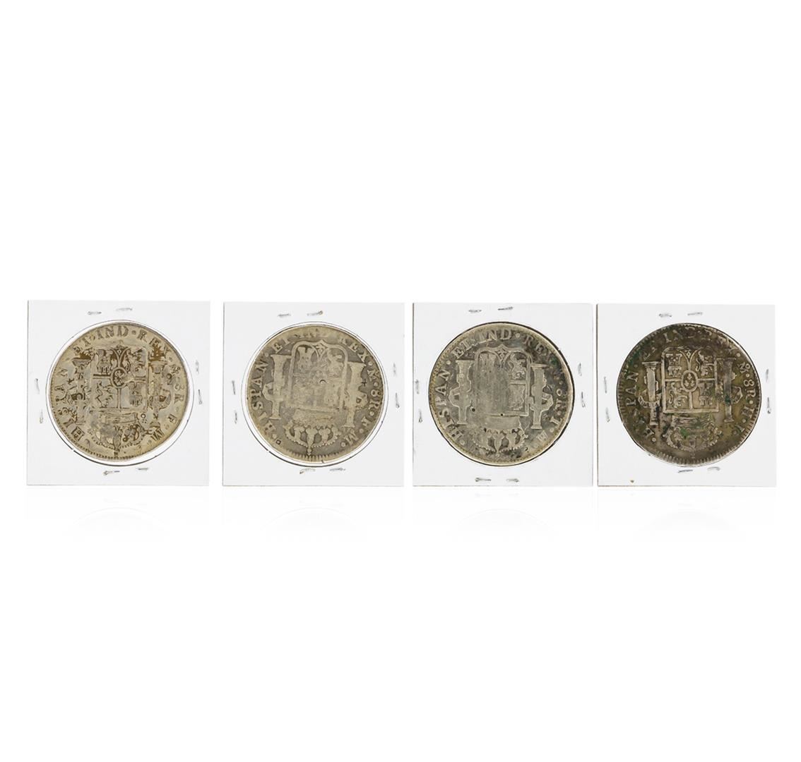 Set of (4) 8 Reales Mexico Silver Coins 1775, 1792, 1807 & 1810