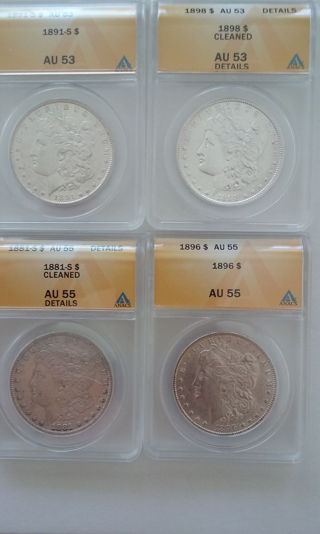 1891-S,1898 AU53 1881-S, 1896 AU55
