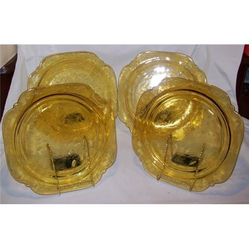 </font></strong>We are offering a set of 4 amber Madrid 10 1/2" dinner plates. These plates are in excellent condition, with no chips or cracks and precious little wear. There are some manufacturing bubbles. They also have a very nice shine. I don't think they were used very much. This sale will benefit our local Hospice. They have a booth here in our mall where they sell the nicer things that are donated to them. Please visit our GoAntiques site to view the other selections we have listed on behalf of this beloved charity. </font>
