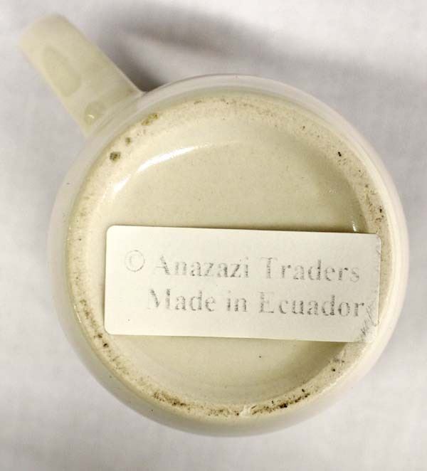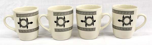Set of 4 Anasazi Traders Mimbres Designed Black on White Ceramic Geometric Turtle Cups, made in Ecuador, measure 4.25'' x 4.75''