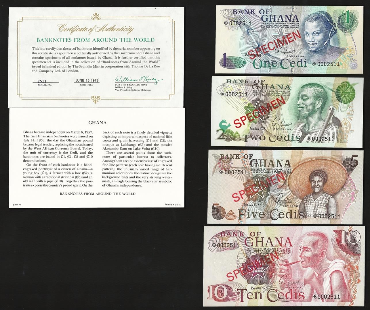 One Set of (4) Bank of Ghana Specimen Bank Notes.
