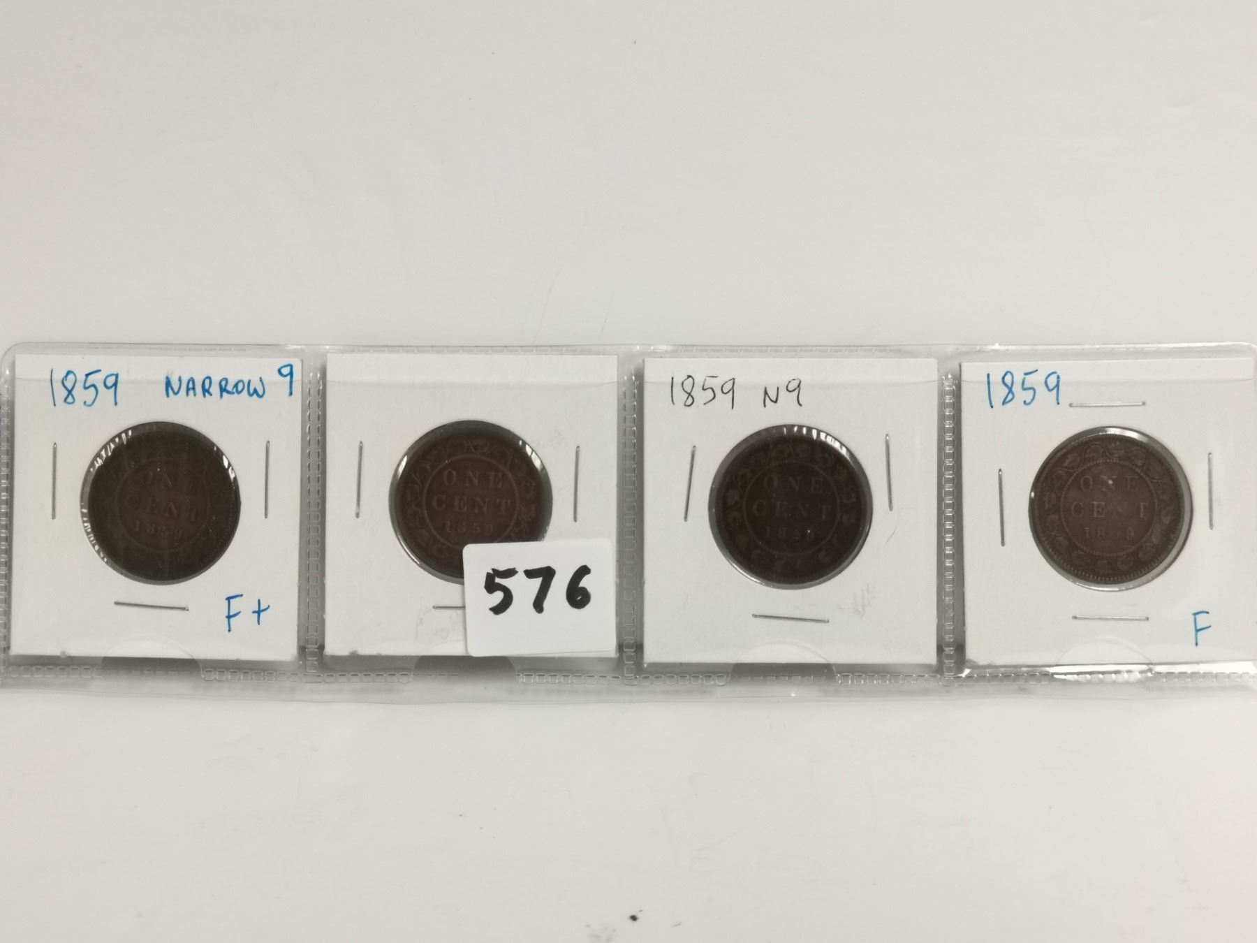 Set of 4, Better grade 1859 Canadian 1 cent coins