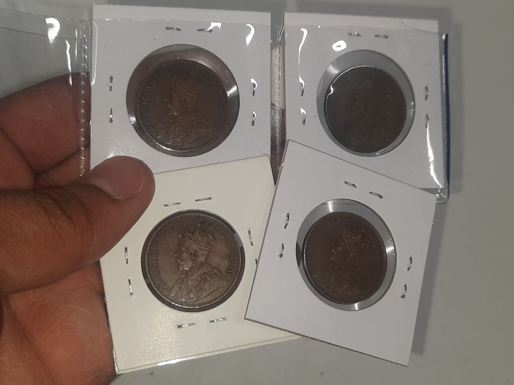 Set of 4 Canadian Error & Variety Nickels. Includes 1942 Tombac with Die Crack at 2 in Date, 1949 Spikes behind the king’s head from Die Clash, 1961 Doubled 61 & 1962 Doubled Middle A. A nice selection.