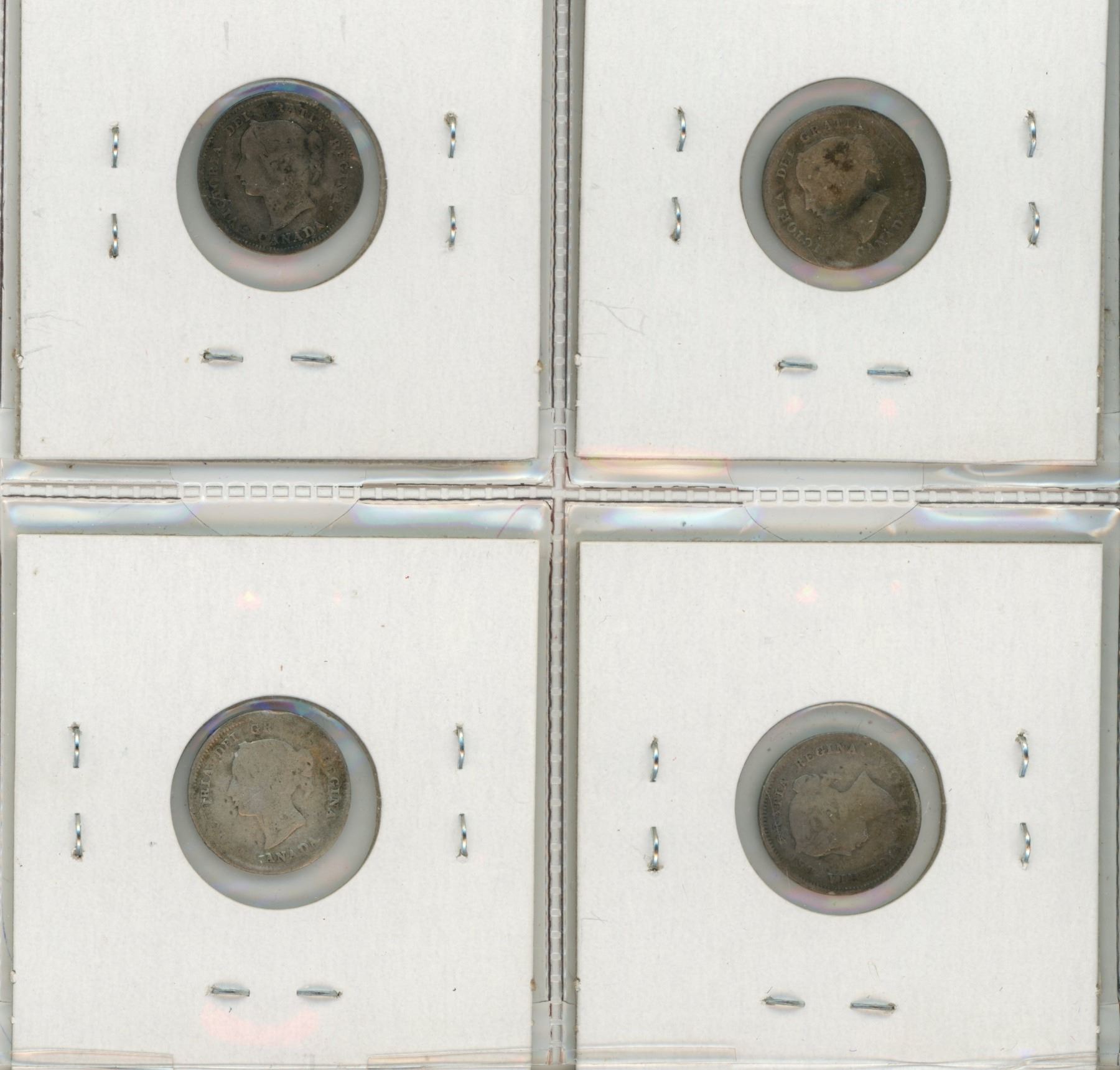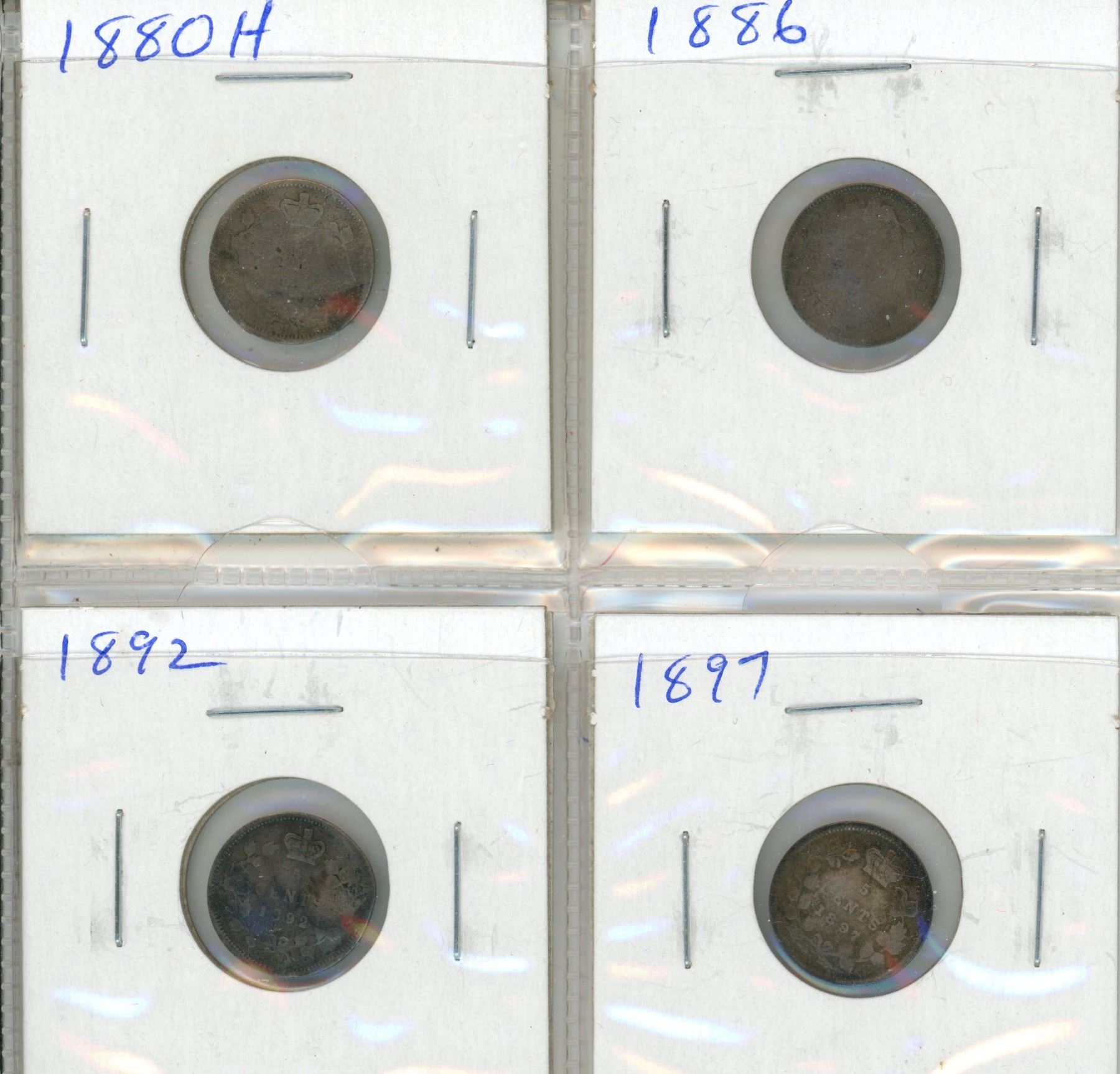 Set of 4 Canadian Victorian Silver 5 Cents 1880H, 1886, 1892, 1897