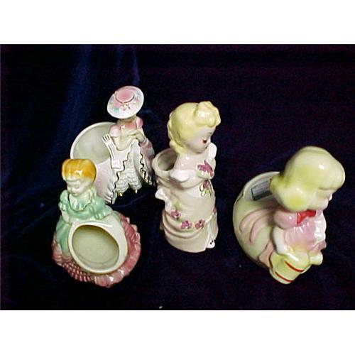 </font></strong>Set of 4 Ceramic Planters. All of lovely ladies! Tallest is 8" and shortest is 6" One piece is signed. They appear to be from the 50's-a sweet time for these! All in nice conditon. </font>