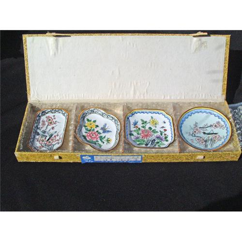 <tr><td>Title:Set of 4 Chinese enamel dishes with intricate</td></tr>