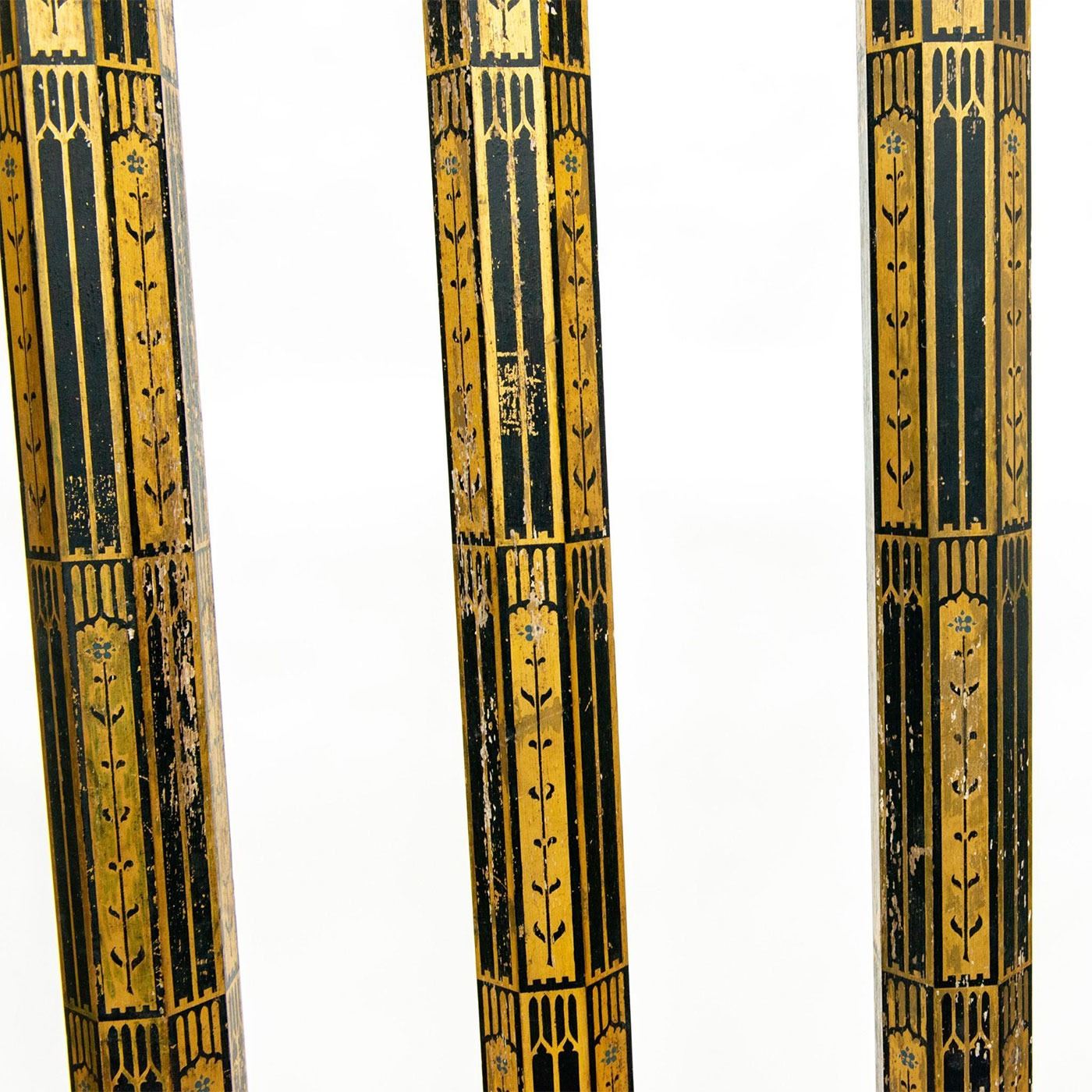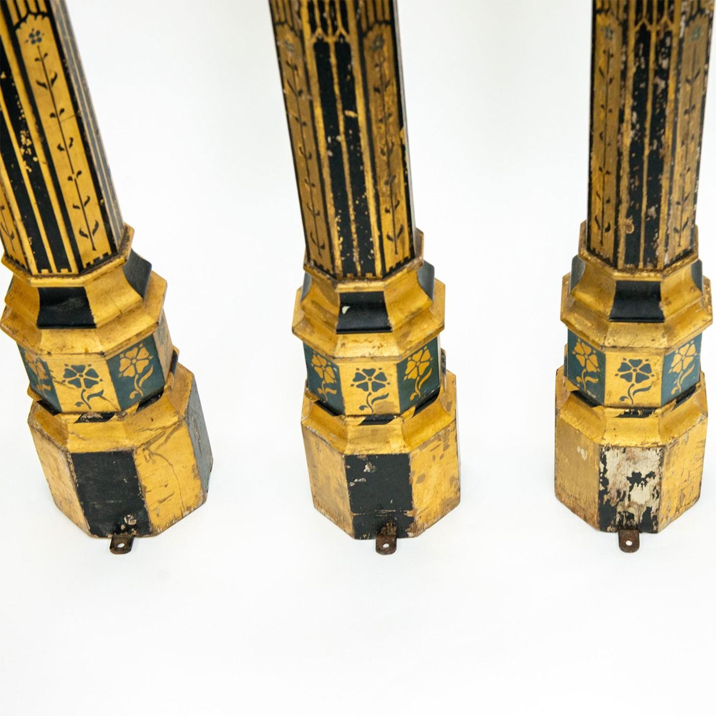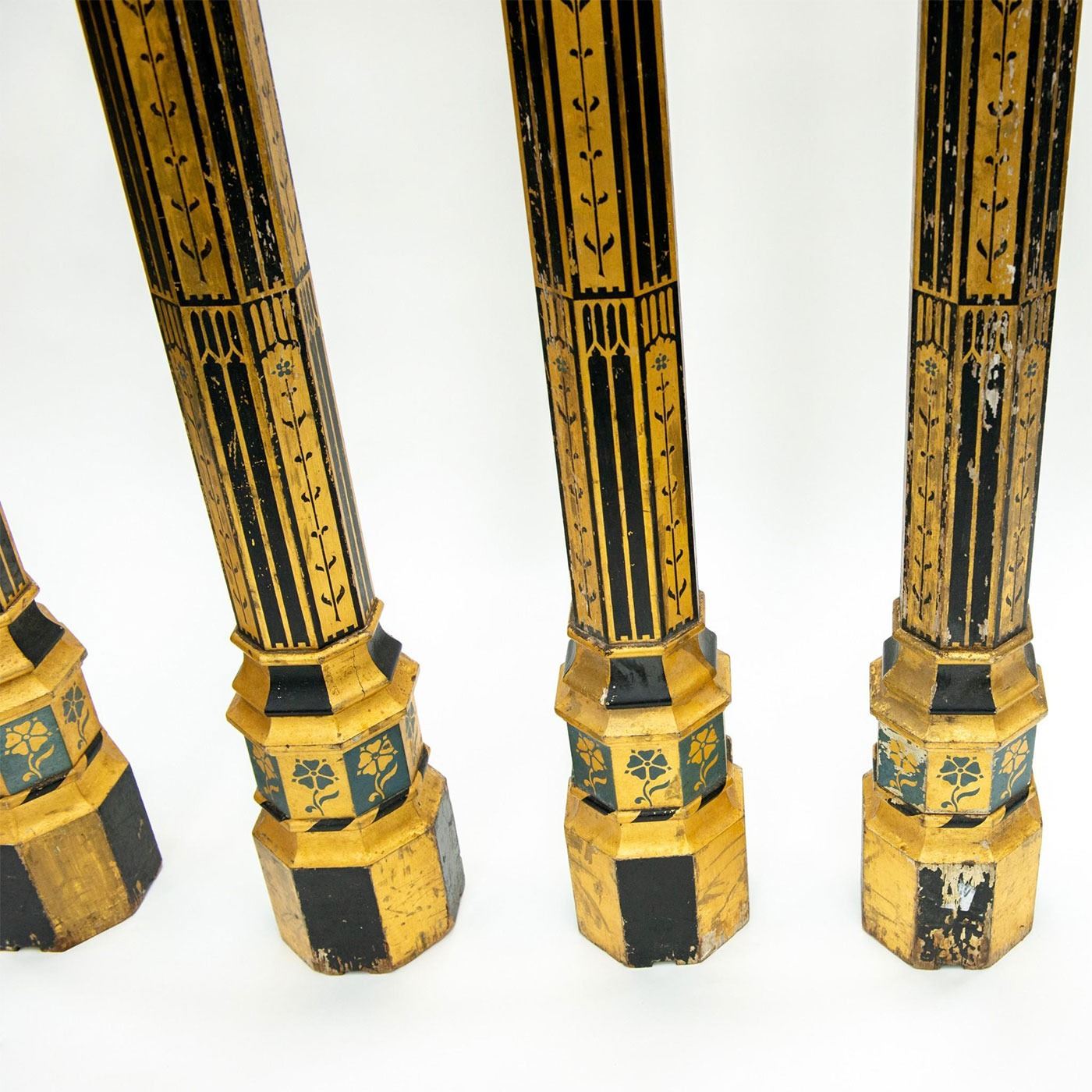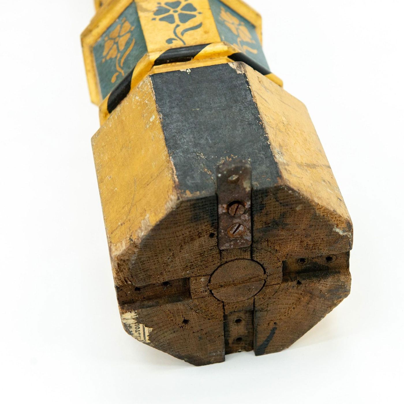 Antique, hand painted with original paint and accented with gold leaf finish. Excellent condition for age. Medium: Wood