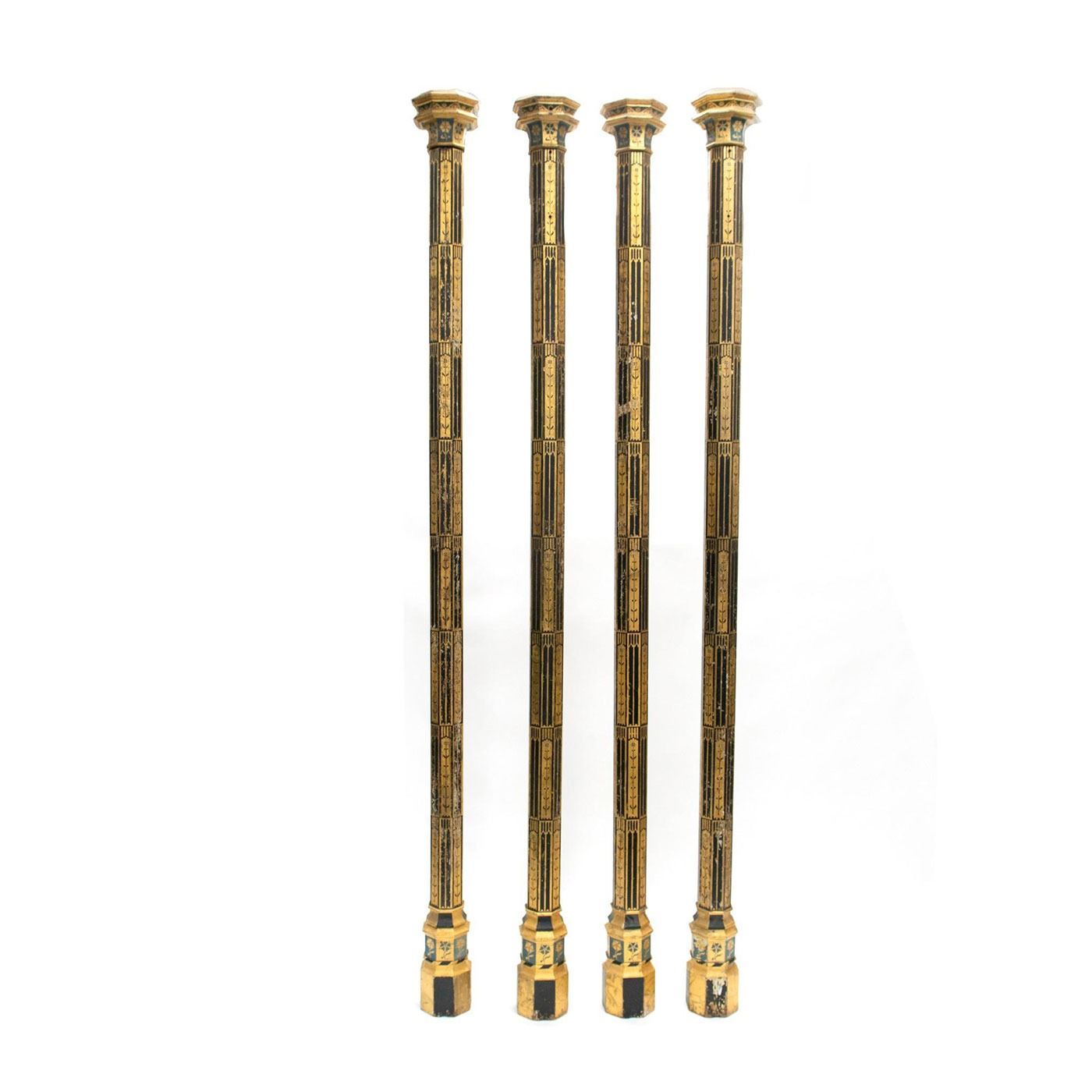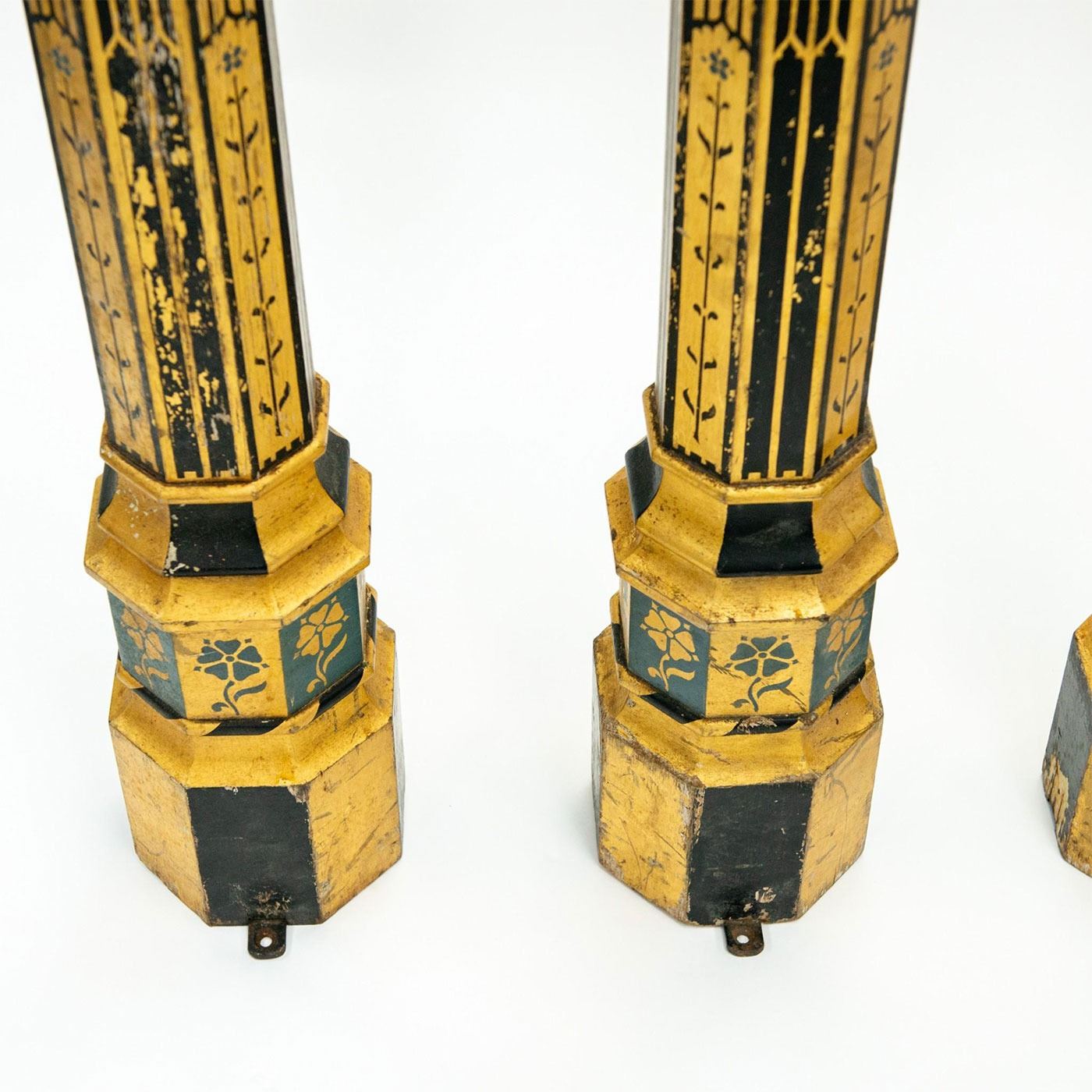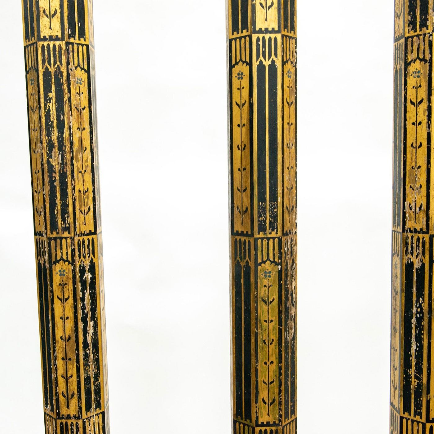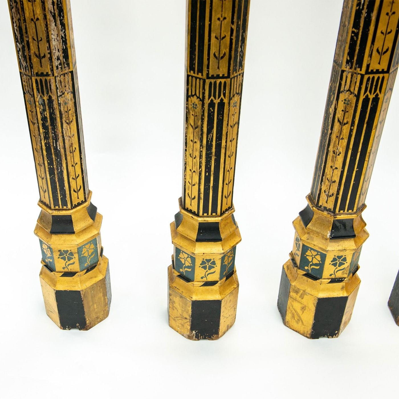 Antique, hand painted with original paint and accented with gold leaf finish. Excellent condition for age. Medium: Wood
