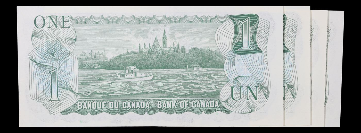 Set of 4 Concecutive 1973 Canada 1 Dollar Note P: 85C Grades CU.