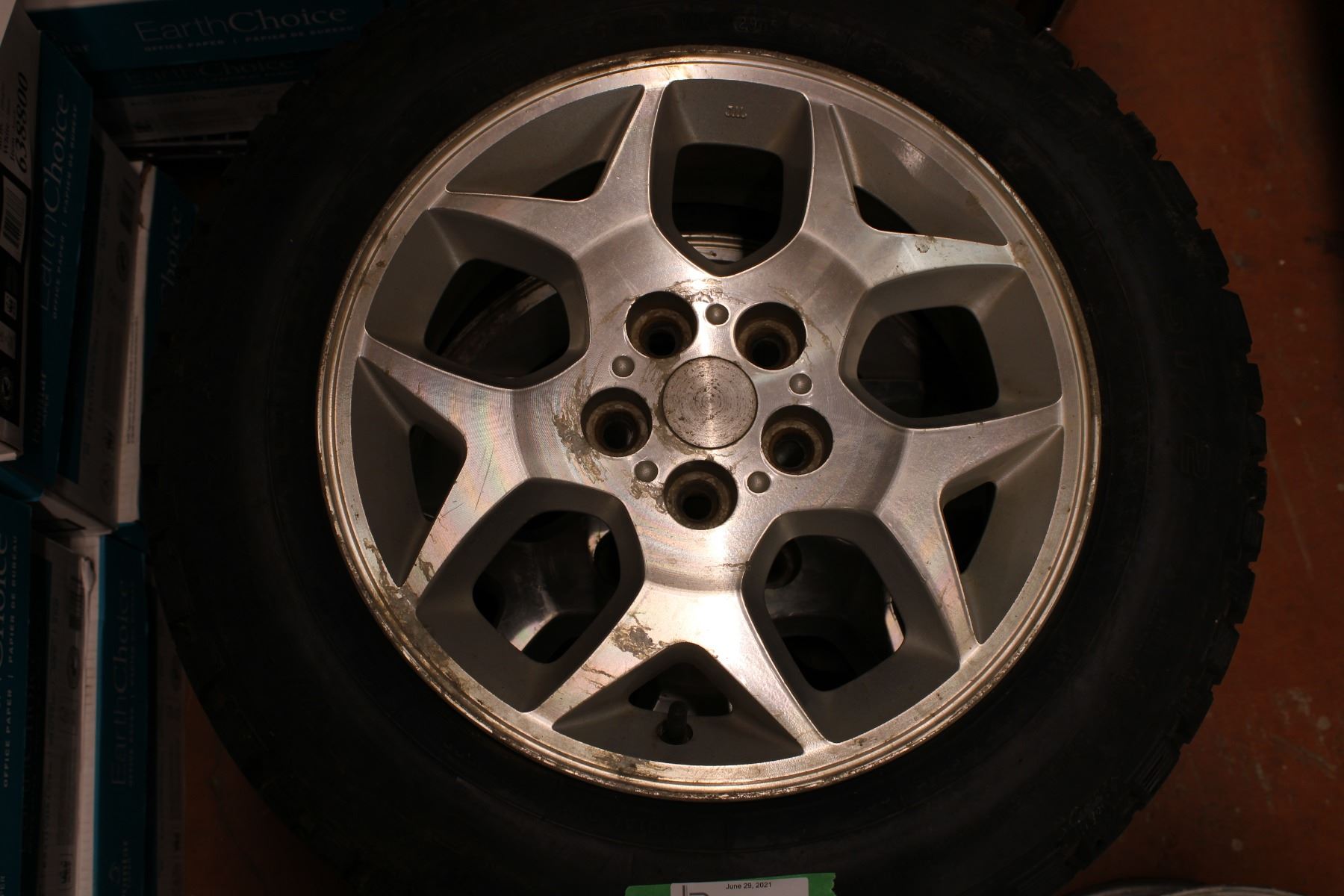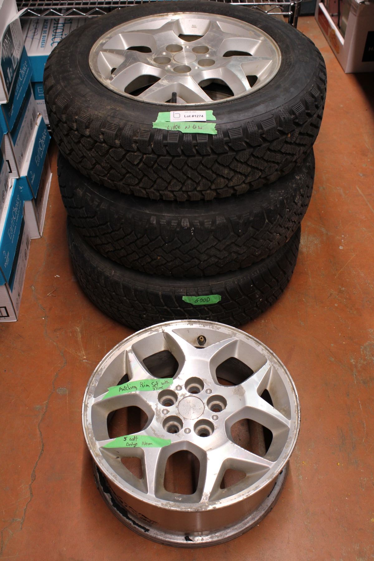 1 tire looks new, 1 tire good, 1 tire poor and 1 rim only
