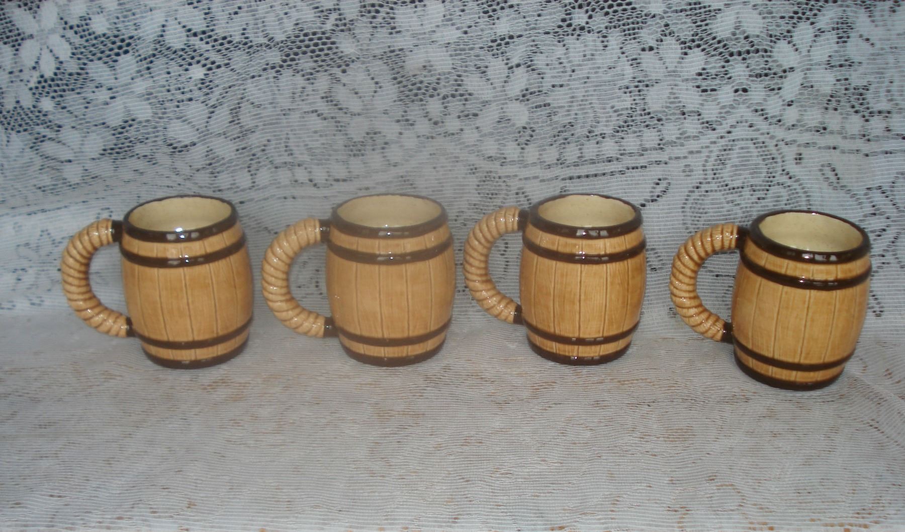 Set of 4 First Nations Western Mugs Blue Some Uneven Glazing