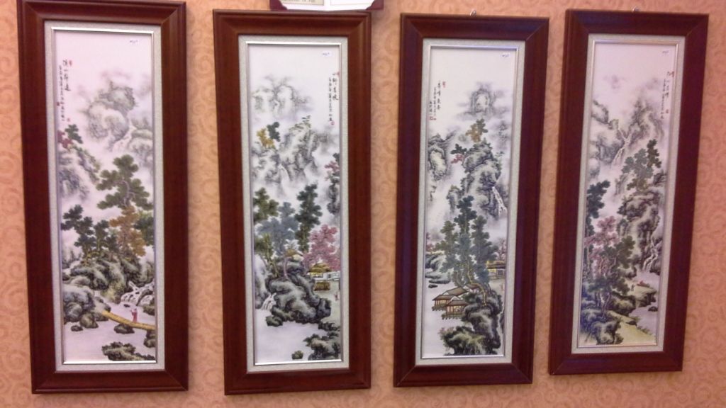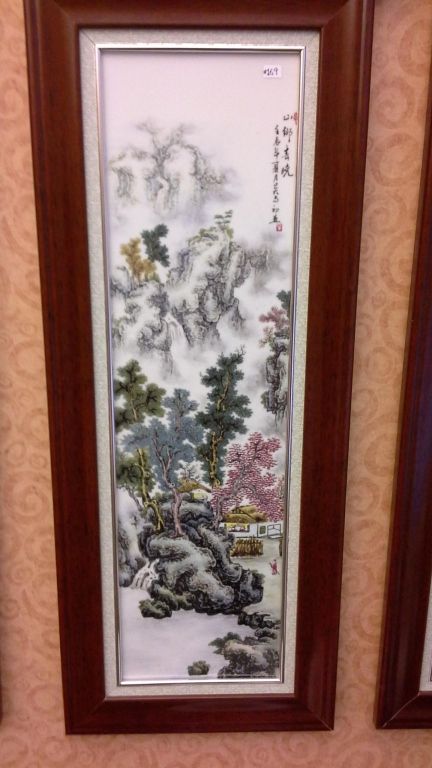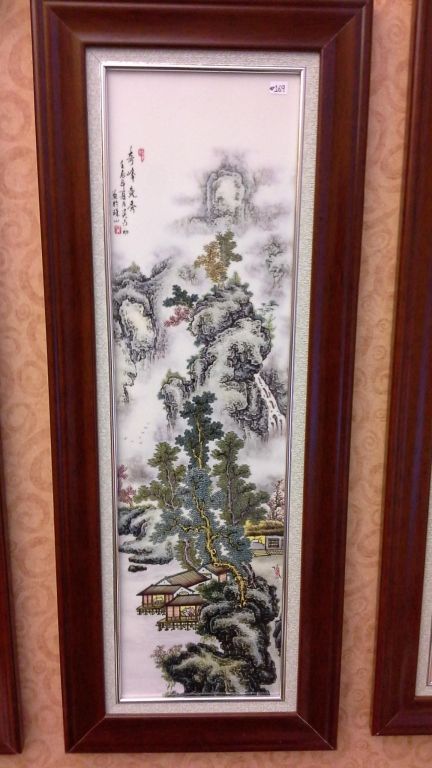 Set of 4 Framed Chinese Porcelain Panels (Each Panel is 14" X 35.5")