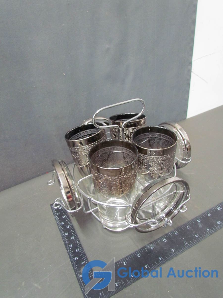 Set of 4 Glasses and Coasters Caddy