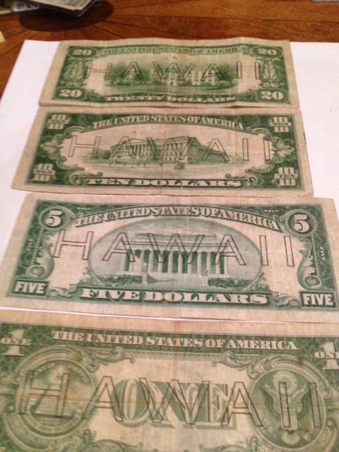 Set of 4 Hawaii WWII Notes.$1, $5, $10, $20