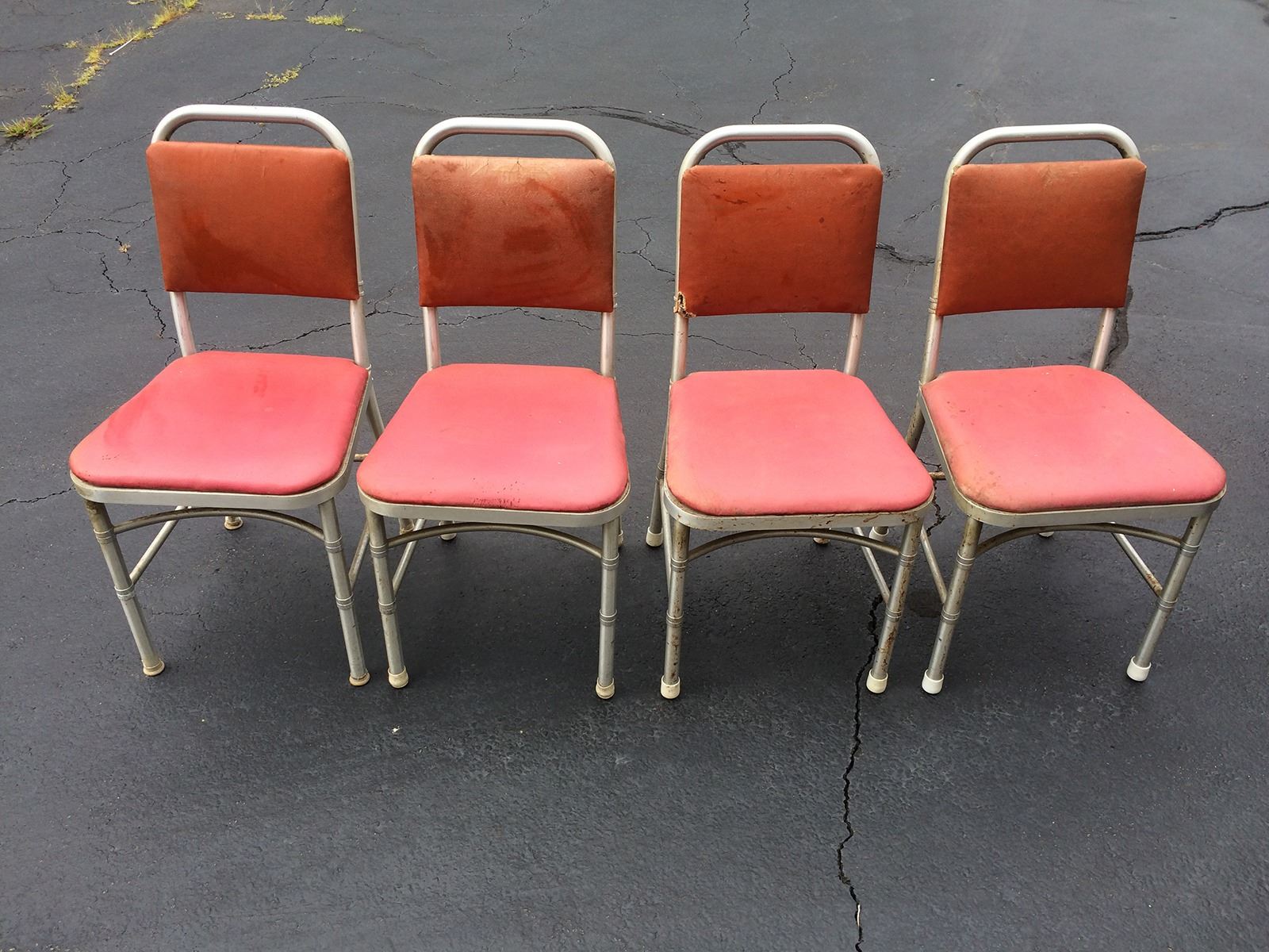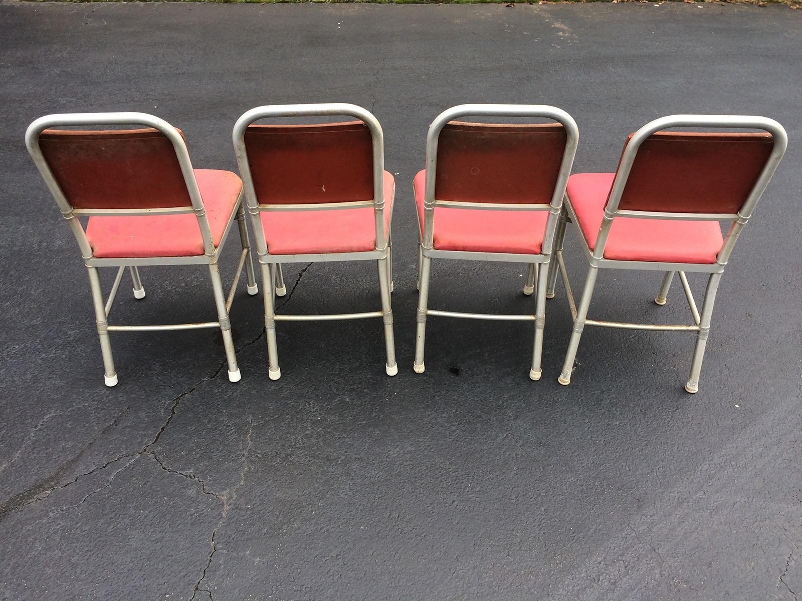 Set of 4 matching airplane aluminum mid century modern chairs.