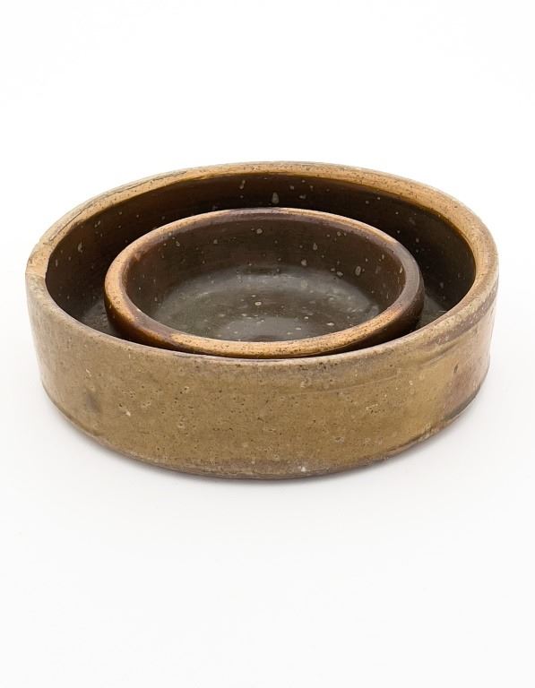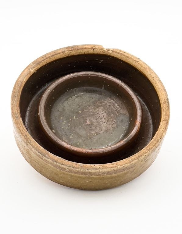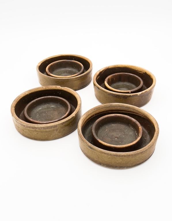 Complete set of 4 stoneware ant traps. Attributed to Meyer. Rare estate collected set.