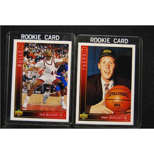 1991 Upper Deck 30 Bird vs. Person, 1993 Upper Deck 507 Birdman, 1993 Upper Deck 163 Shawn Bradley, 1993 Upper Deck 165 Corie Blount.