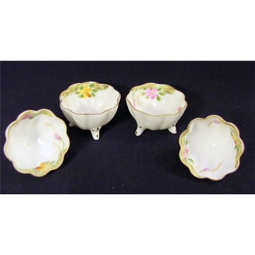 Wonderful Nippon salt dips (4) with a floral pattern. These pieces are so thin, they are extremely fragile.