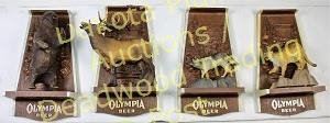 Set of 4 Olympia Beer Wildlife series 3D plaques c. 1970's including elk, mountain lion, bear, and w