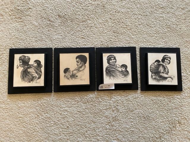 7" x 7" each. Original pencil art. Artist unknown, see photos for artist signature.