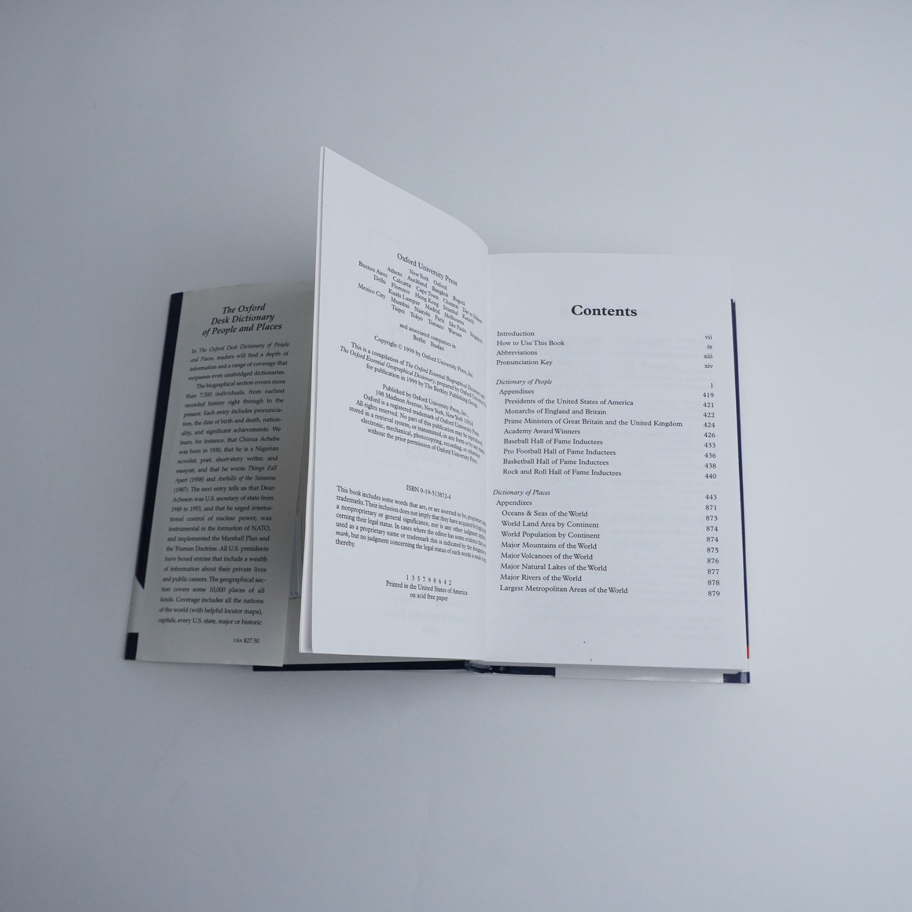 This lot includes four hardcover reference books spanning language, biography, and historical rankings. The set features Oxford Desk Dictionary of People and Places, a comprehensive reference covering geographical and biographical terms; 2107 Curious Word Origins, Sayings & Expressions by Charles Earle Funk, offering insights into the history and meaning of common phrases; The 100: A Ranking of the Most Influential Persons in History by Michael H. Hart, a thought-provoking assessment of historical figures who shaped civilization; and Encyclopedia of Biography, published by St. Martin's Press, providing detailed profiles of notable individuals. These books are valuable resources for scholars, writers, and collectors interested in language, history, and influential figures.